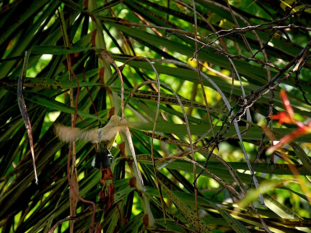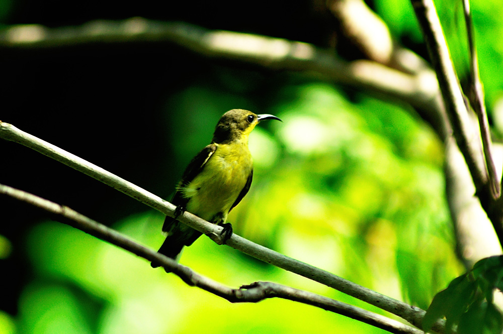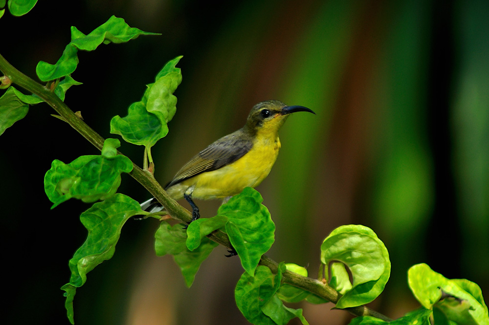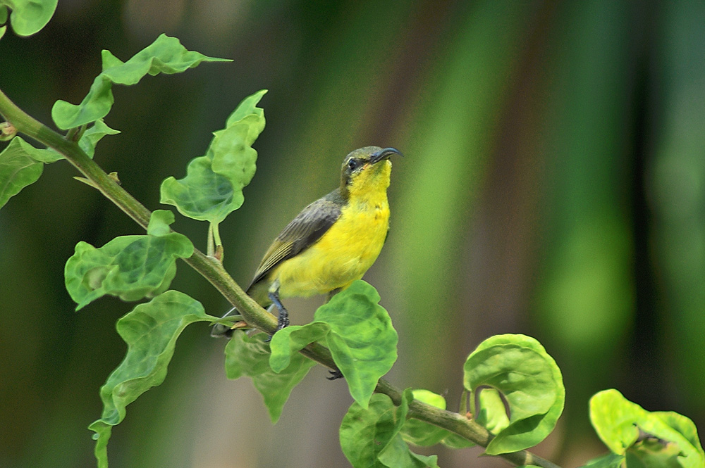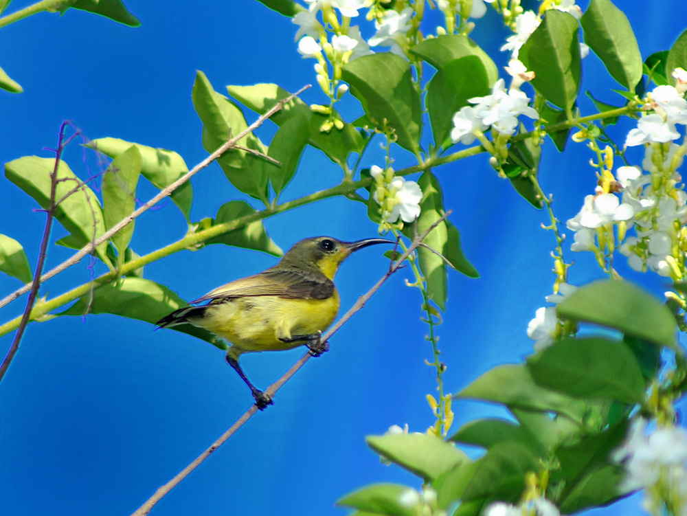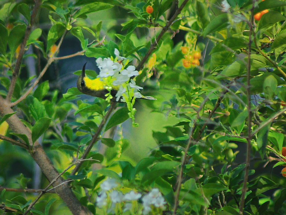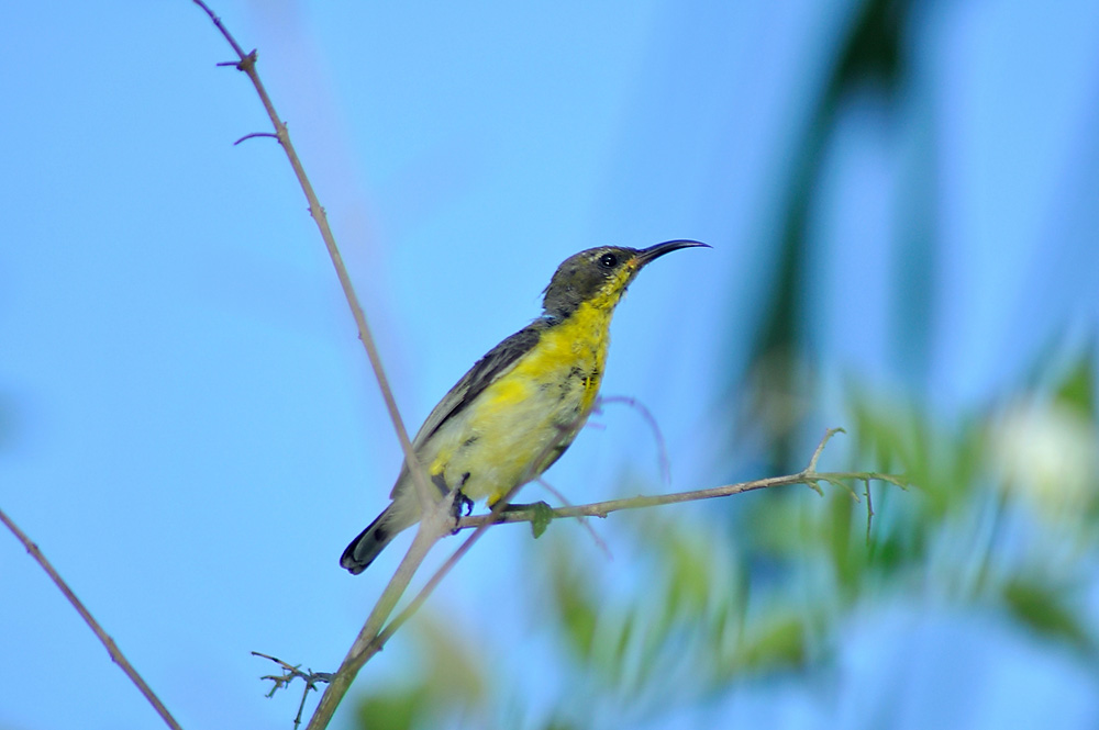 พ่อนกและแม่นกกินปลีอกเหลือง(Olive-backed Sunbird)พาลูกๆออกมาหัดหากิน...