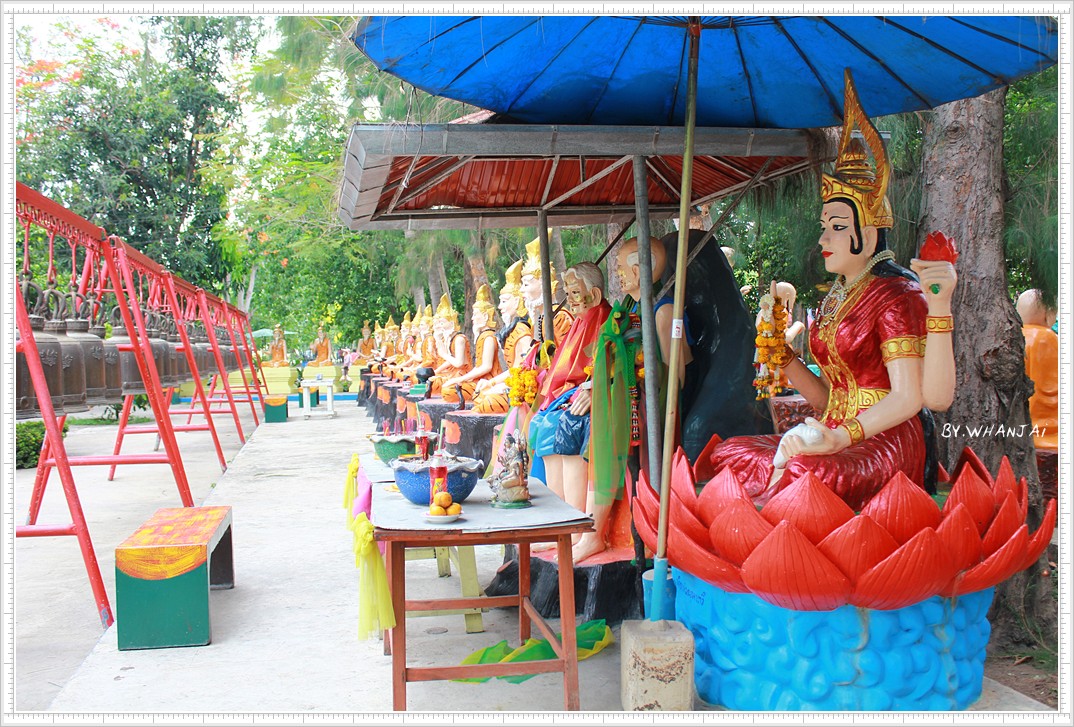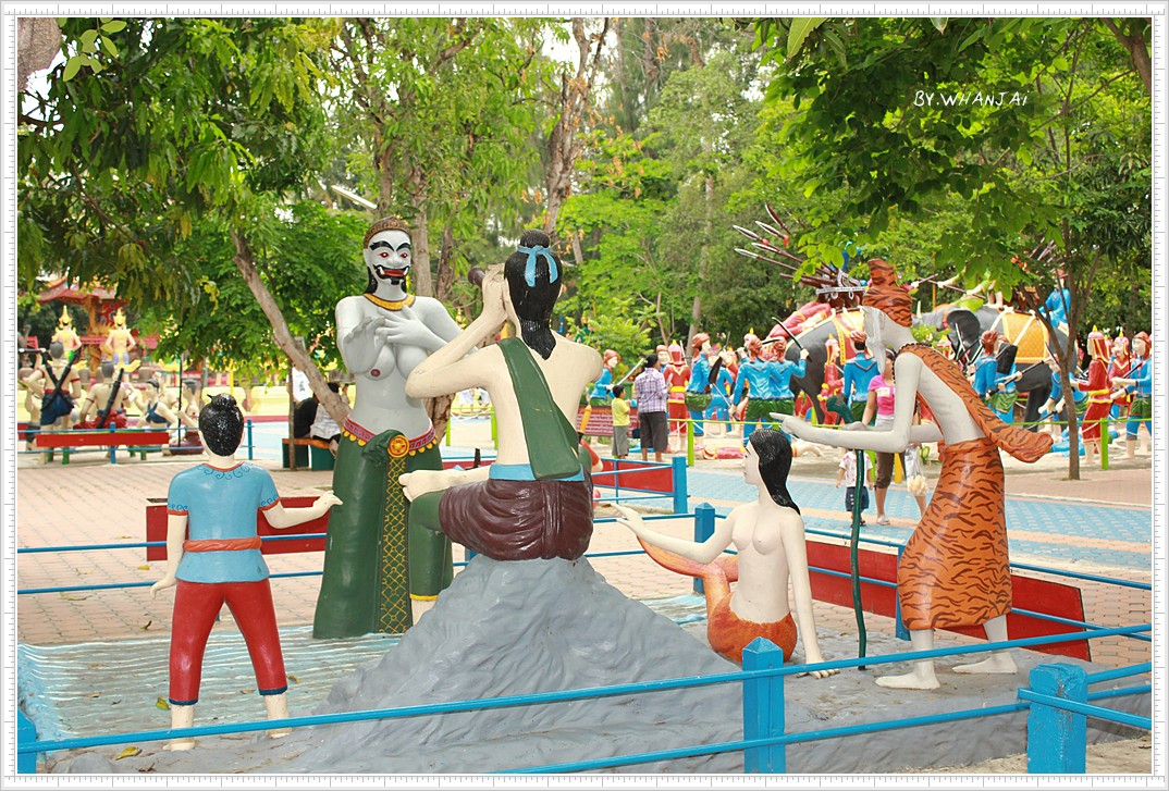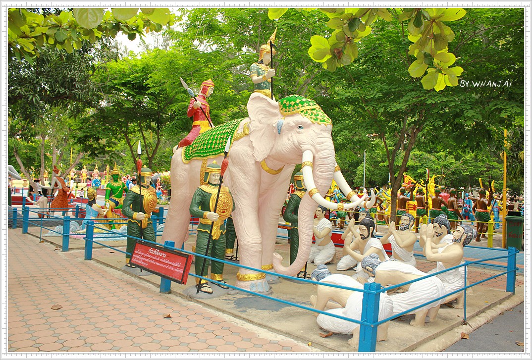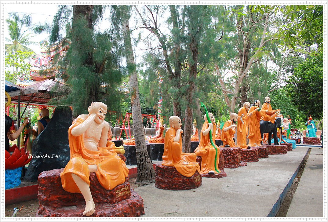 ขอพรกันแล้วก็เดินชมบริเวณวัดมีรูปปั้นแสดง แดนนรก แดนสวรรค์ แดนเทพเจ้าไทย และแดนเทพเจ้าจีนซึ่งมีรูปปั้นเจ้าแม่กวนอิมขนาดใหญ่ มีรูปปั้นแสดงเหตุการณ์ในประวัติศาสตร์เกี่ยวกับสงครามไทย-พม่า....