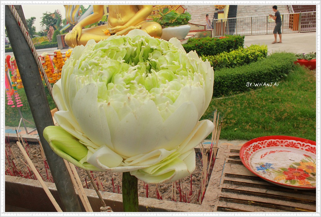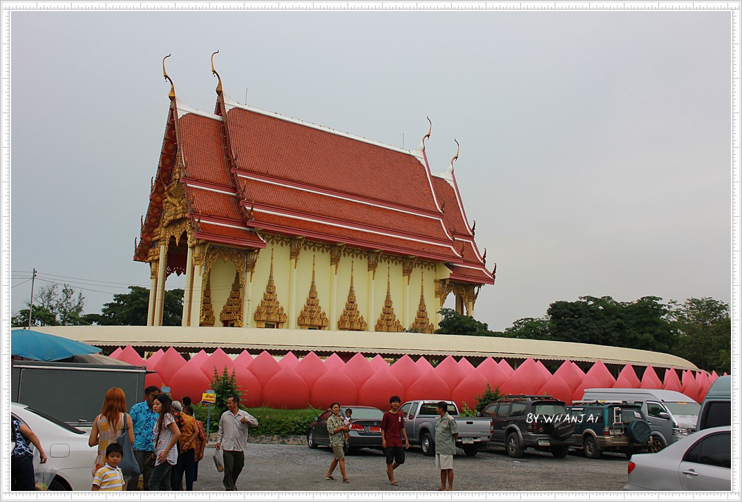 พระอุโบสถ ล้อมรอบด้วยกลีบบัวสีชมพูขนาดใหญ่ที่สุดในโลก