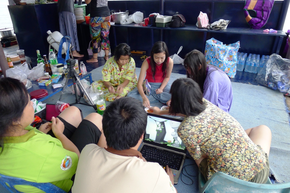 จอดรถไว้ริมฝั่ง ช่วยกันขนของลงแพ.....