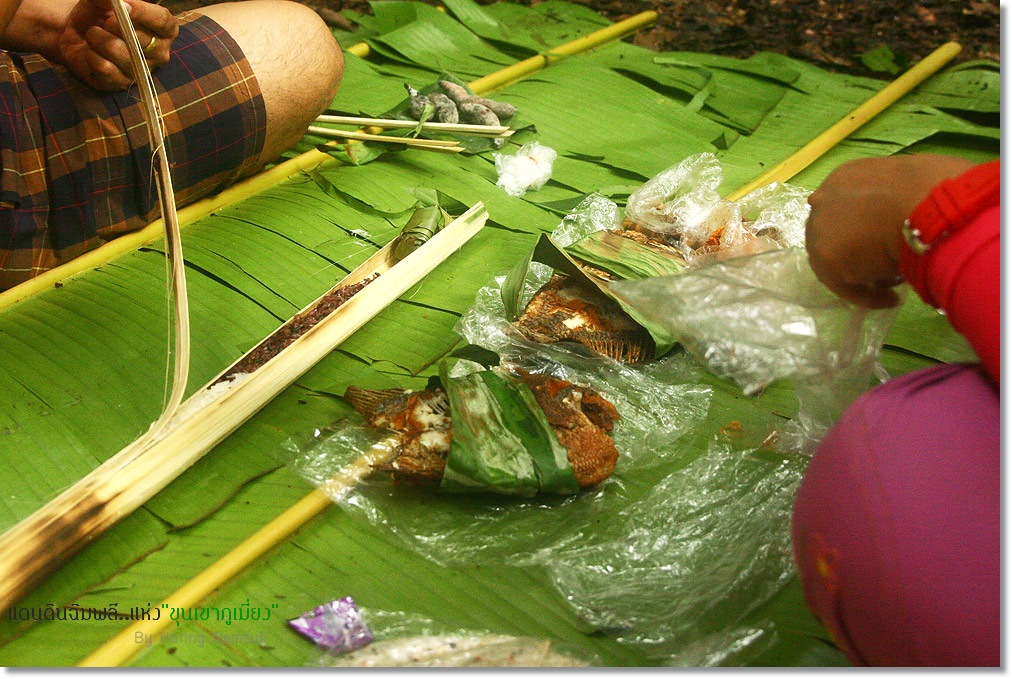 "" ข้าวเหนียว..อุ่น ๆ จาก กระบอกไม้ไผ่.. สุดอร่อย..นิ่ม หอม... ขอบคุณ.คุณลุงดอน..ที่จัดการให้เรียบร้อย พร้อม ปลาทอดที่เหลือมากจากมื้อเช้าวานนี้.... ยิ้มแป้น อุตส่าห์ พกใส่กระเป๋ามา... เพราะเสียดายไม่กล้าทิ้ง..