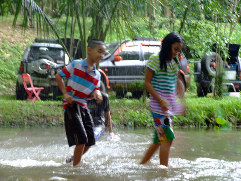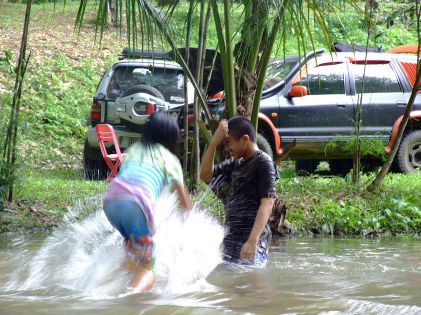 น้ำป่าคับพี่ แรงดีทีเดียว ทางแคบเลยไม่เสี่ยงเอารถข้ามกลับ