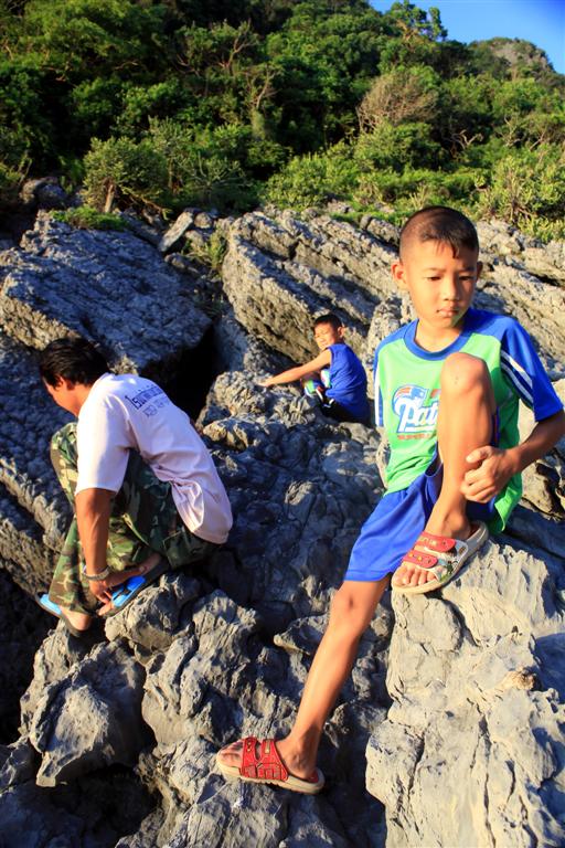 น้ำถึงโขดหิน ลงไปใม่ใด้ ตื่นสายหน่อย พระอาทิตย์ขึ้นแล้ว
