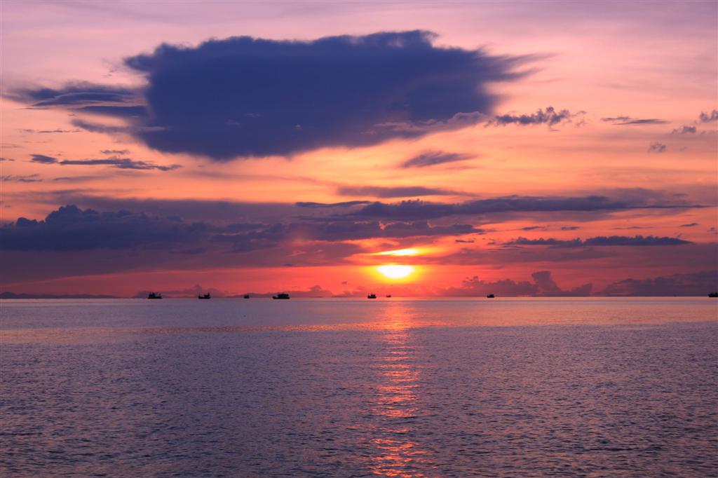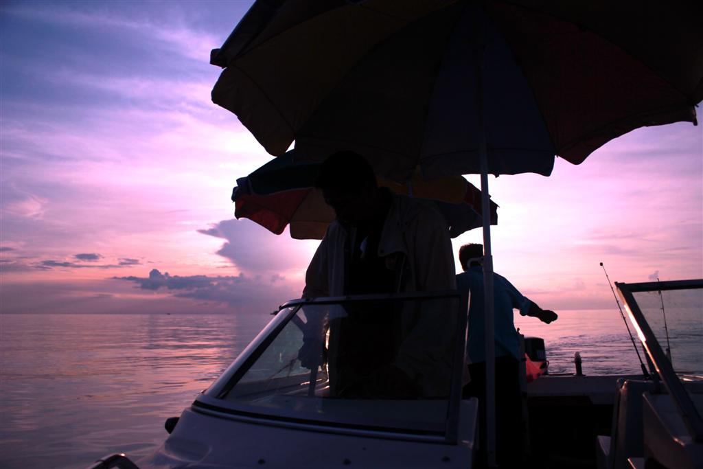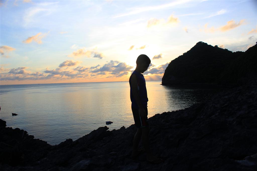 เลยถือโอกาส พักนั่งคุย รอพระอาทิตย์ตกฝั่งนี้ใกลออกไปมีกลุ่มเรือใดส์ หมึกรอมืดค่ำ เปิดไฟล่อปลาหมึกอยู่หลายลำเลยครับ