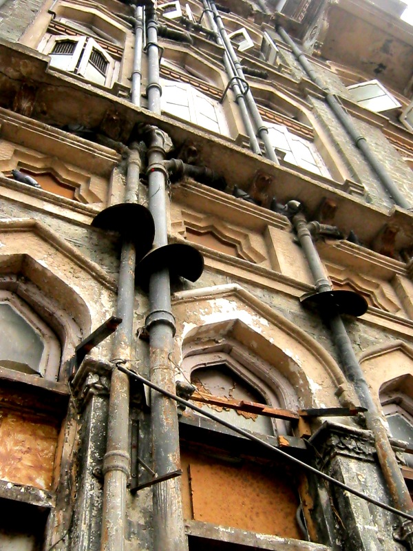 ท่อ Soil, waste, vent เดินนอกอาคาร ด้วยท่อ cast iron เหล็กหล่อ น่าจะอายุหลายร้อยปี