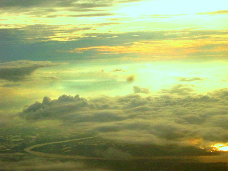 มองทะลุเมฆลงมาเห็นปากน้ำสมุทรปราการ หรือไม่ก็เป็นบางปะกงครับ เพราะ กำลังจะลงที่ สุวรรณภูมิแล้วตอนนี้
