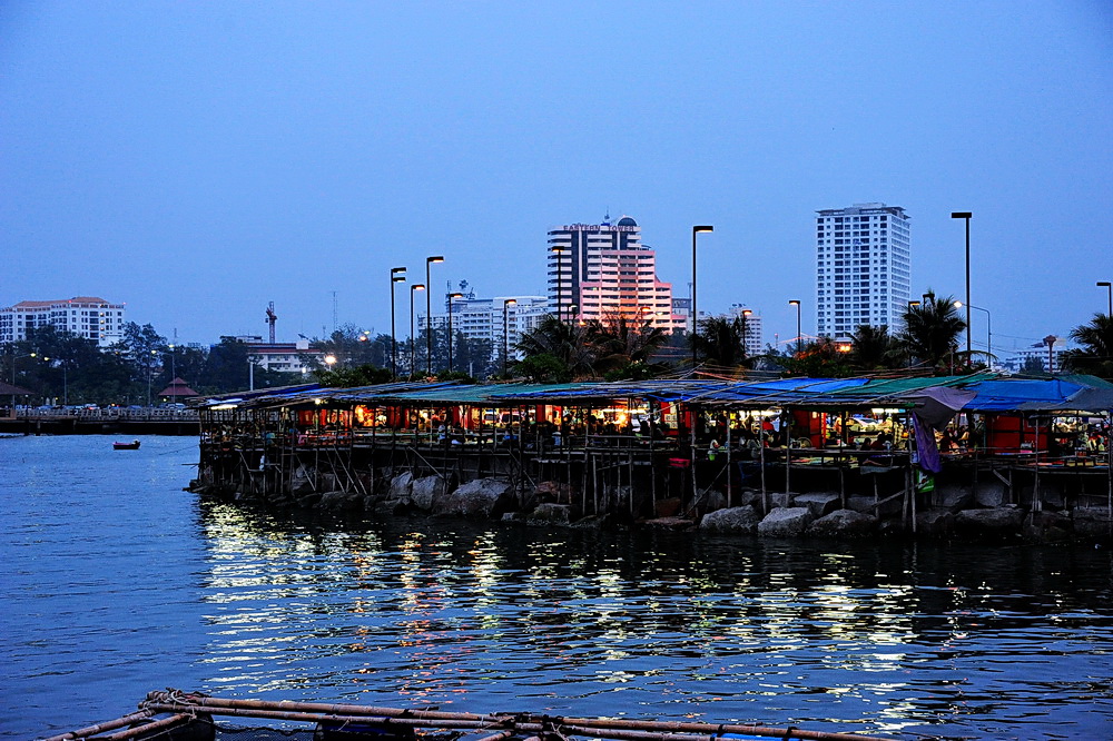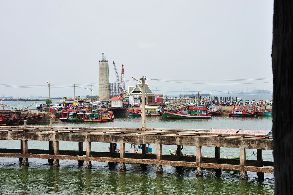 บรรยากาศริมทะเล อากาศร้อนอบอ้าว ท้องฟ้ามีเมฆมาก โชคดีที่นี่ยังไม่มีฝนตก