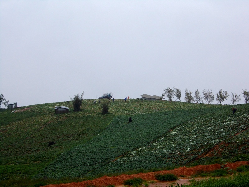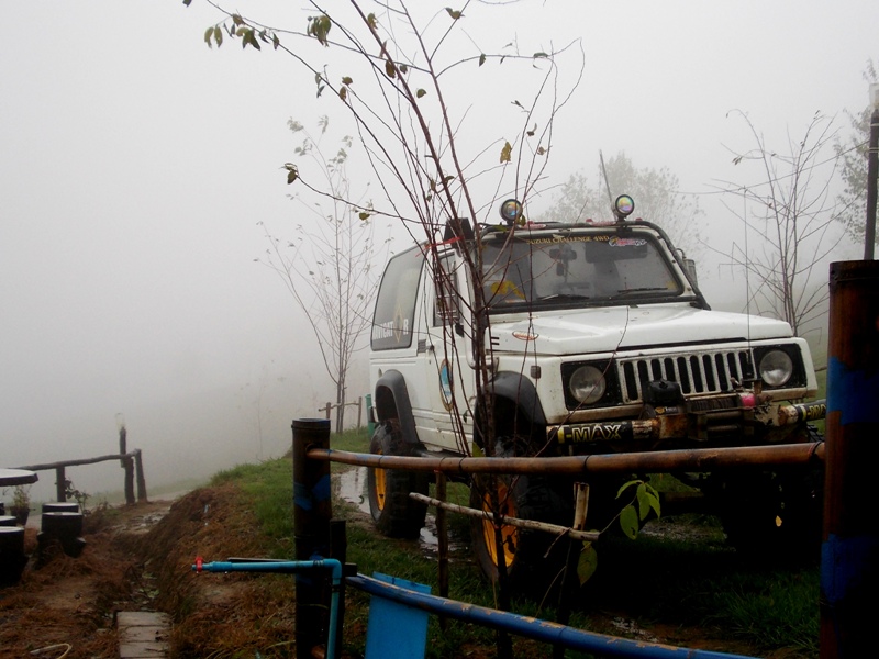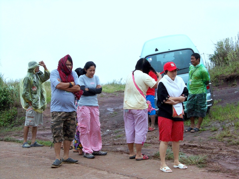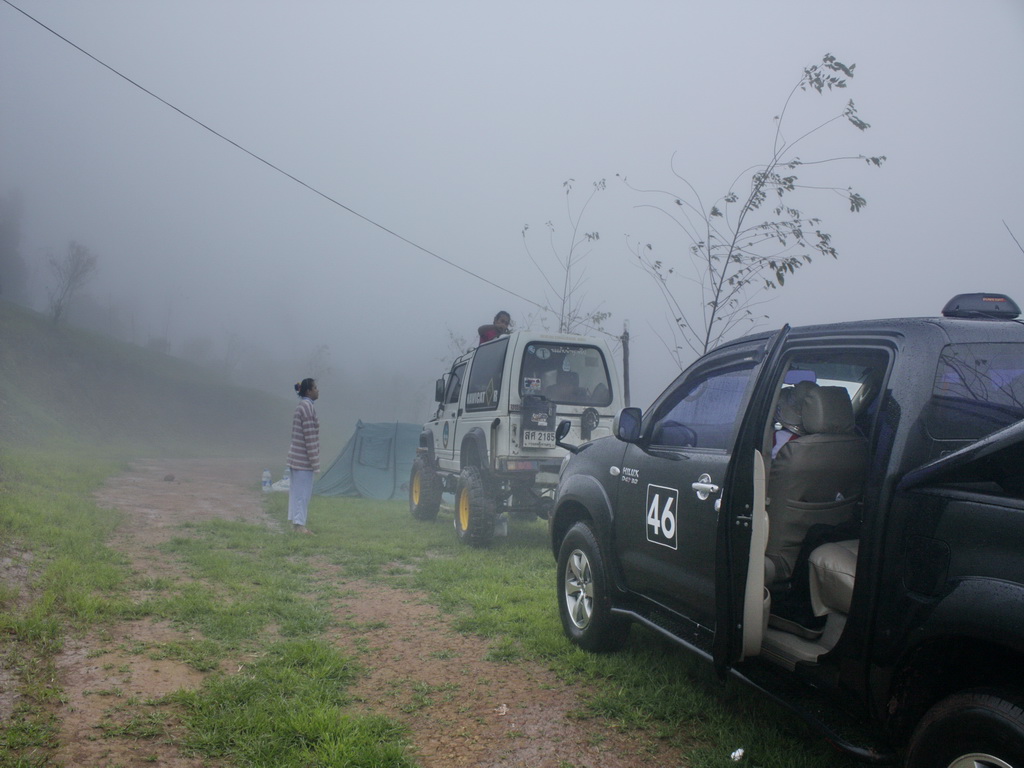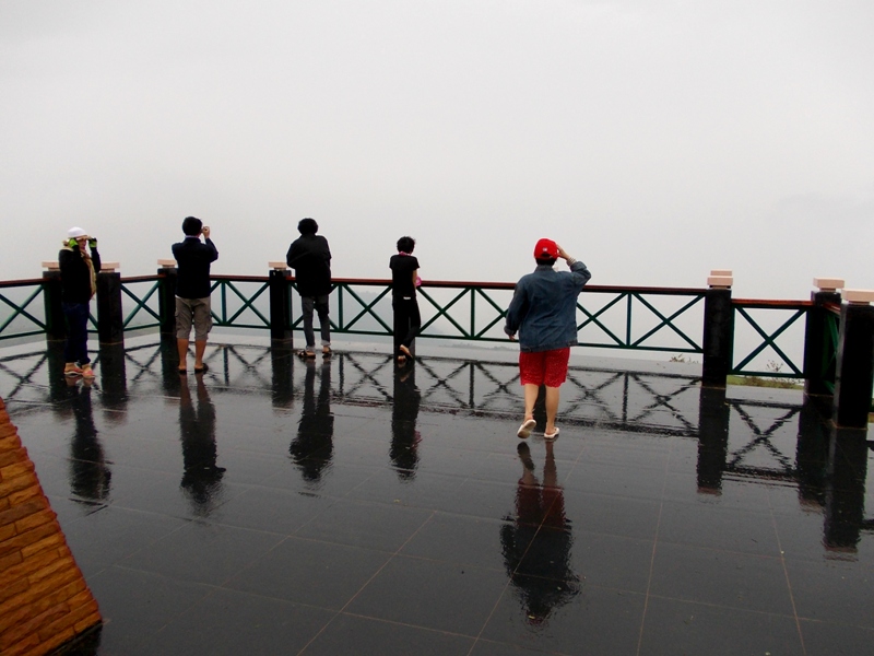 ลมพัดเอาหมอกมาคลุมทั้งยอดเขามองไม่เห็นอะไรเลยจากระยะ 5-10 เมตร