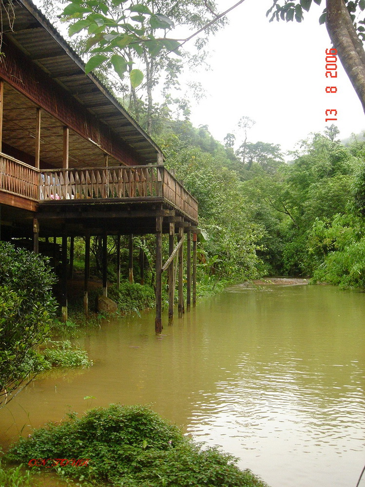 ห่างจากที่เราทานอาหารไปร้อยกว่าเมตรมีบ้านพักอีกหลังอยู่ติดน้ำเลยครับ