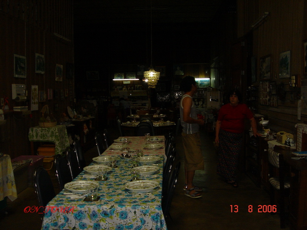 ทีแรกผมเห็นโต๊ะที่เตรียมไว้นึกว่าป้าเขาจัดเตรียมไว้รอนักท่องเที่ยวที่เข้าไปเที่ยวอุตสาห์ไปนั่งซะดิบดีที่ไหนได้ป้าเขาเตรียมไว้ให้สำหรับคนที่โทรมาจองที่พักล่วงหน้าแล้วป้าเขาจะมีอาหารรวมที่พักให้ครับ ส่วนพวกเราไปนั่งหน้าบ้านเลย