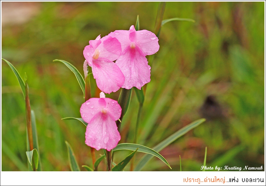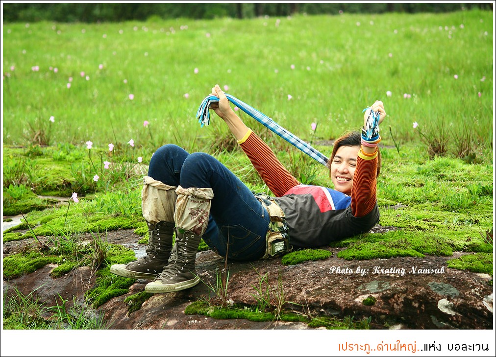 ... จุดหมายของเรา.. ก็ น้ำตกใหญ่ ๆ.. หลายน้ำตก..ตาดขมึด, ตาดตาเก็ด,ตาดเสือ,ตาดน้อยห้วยดินแดง..แหละ..ลานดอกเปราะภู..แสนสวย แห่ง..ด่านใหญ่.. น้ำตกใหญ่..ๆๆ ที่ เราได้ยินมา..หลาย ๆ ตาด ใน.ลาวใต้..ส่วนมาก ก็มาจากที่ ราบสูง บอละเวน นี้ นั้นแหละ..ค่ะ.