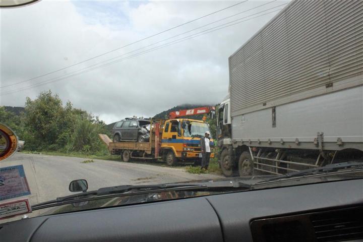 และแล้วสิ่งที่เรากลัวมันก็เกิดขึ้นครับอุบัติเหตุรถชนกันบนภูเขาครับเพราะทางแคบมาก