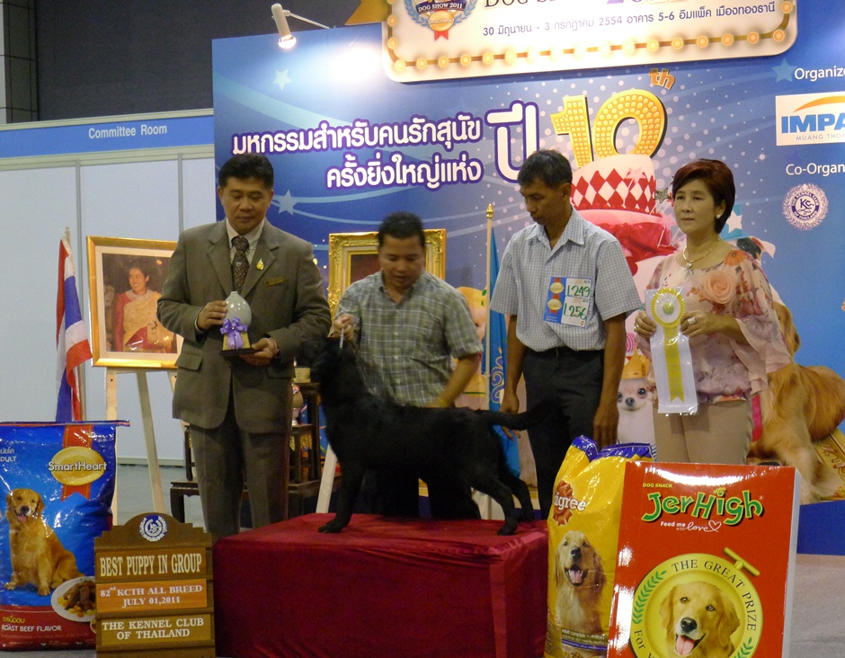ด้านหน้าก็มีมอบรางวัลและถ่ายรูปกับน้องหมาพันธุ์ต่างๆ