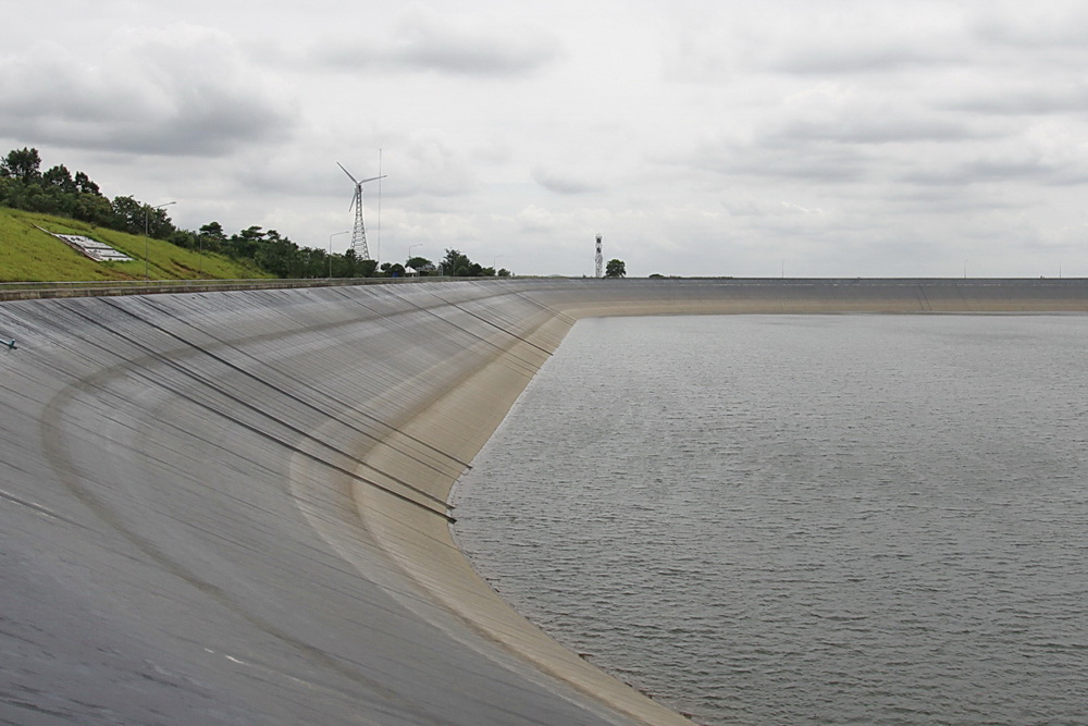 อ่างเก็บน้ำปูด้วยผ้ายางอย่างหนากันน้ำซึม