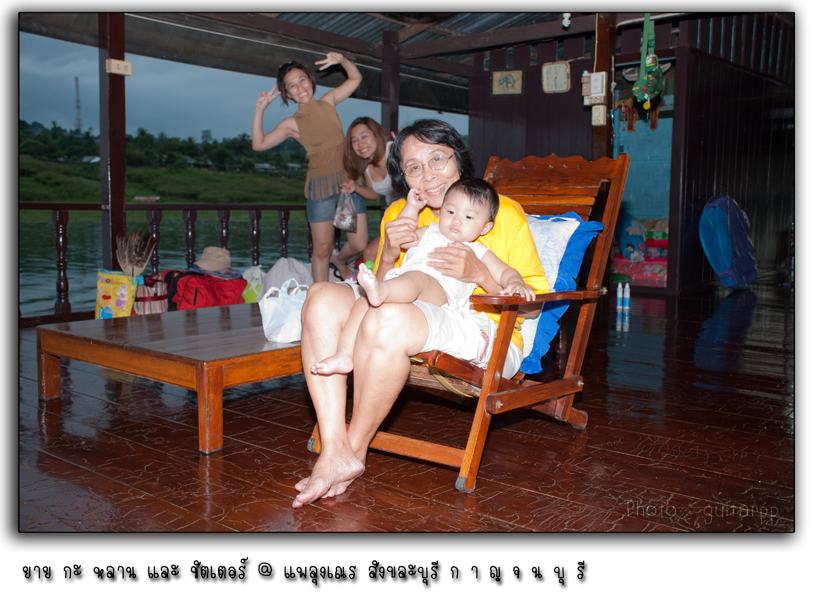 เป็นอีกครั้งที่ได้ไปกาญฯ ครั้งนี้ไปกับครอบครัว เป็นทริปที่ ฉุกละหุก มากก ทีแรกว่าจะพาพ่อไป..แต่แกดันไปต่างจังหวัด..รถทัวร์มะมีกลับซะงั้น.เลยอด...ออกเดินทางวันศุกร์เช้าแต่กว่าจะได้ออกจาก บางบัวทอง 11.30 น.กว่าจะถึง..นู่นนนน...6 โมงเย็น รถก้อติ๊ด...ติดยาวไปถึง นครปฐม นู่น...ขาไปเลยไม่ได้แวะไหนเรย..แวะแต่ปั้มกะกินข้าว...ตามแผน คืนแรกไปนอนที่ป้อมปี่ อช.เขาแหลม คืนสอง นอนแพ ที่สังขละ ขาไปแวะ ตลาดทองผาภูมิ..ซื้อเสบียง ข้าวปลาอาหาร ตอนแรกว่าจะทำกินกันเอง..แต่ดูเวลาแล้ว ซื้อแกงถุงกินดีกว่า..เดี๋ยวเด็กน้อยจะหิวตายซะก่อน..อิอิ..ไปถึง อช.ฯ ก็รีบกางเต้นท์ รีบอาบน้ำกัน สรุปกว่าจะได้กินข้าวเล่นไป