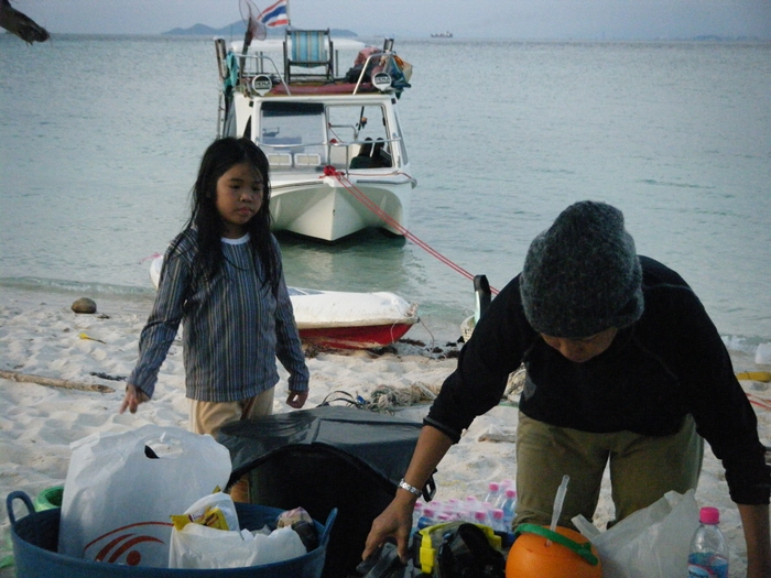 เด็กๆและนักท่องเที่ยวในทริปนี้ต่างชาวยกันเก็บสัมภาระที่เอามาทั้งหมด