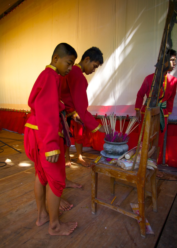 ขอย้อนกลับไป วัดขนอน ดูการแสดงหนังใหญ่ กันนิดหนึ่งครับ ปกติจะแสดงเฉพาะวันเสาร์และอาทิตย์ วันละ ๑ รอบ (ประมาณ ๑๐ โมงเช้า) แต่ถ้ามีผู้ชมมาเพิ่มจำนวนเยอะ ก็อาจจะแสดงเพิ่มได้