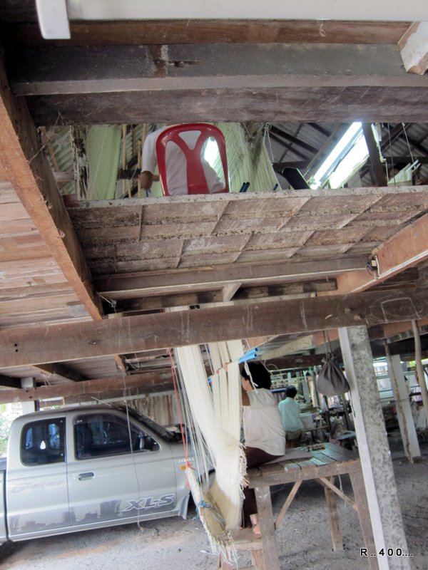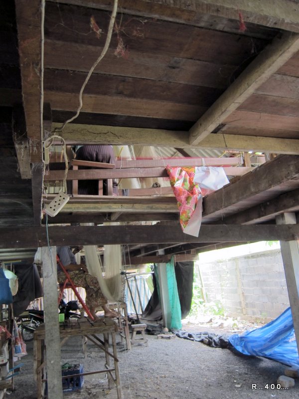 บรรยากาศ การทอ ทอในบ้านทรงเรือนไทย