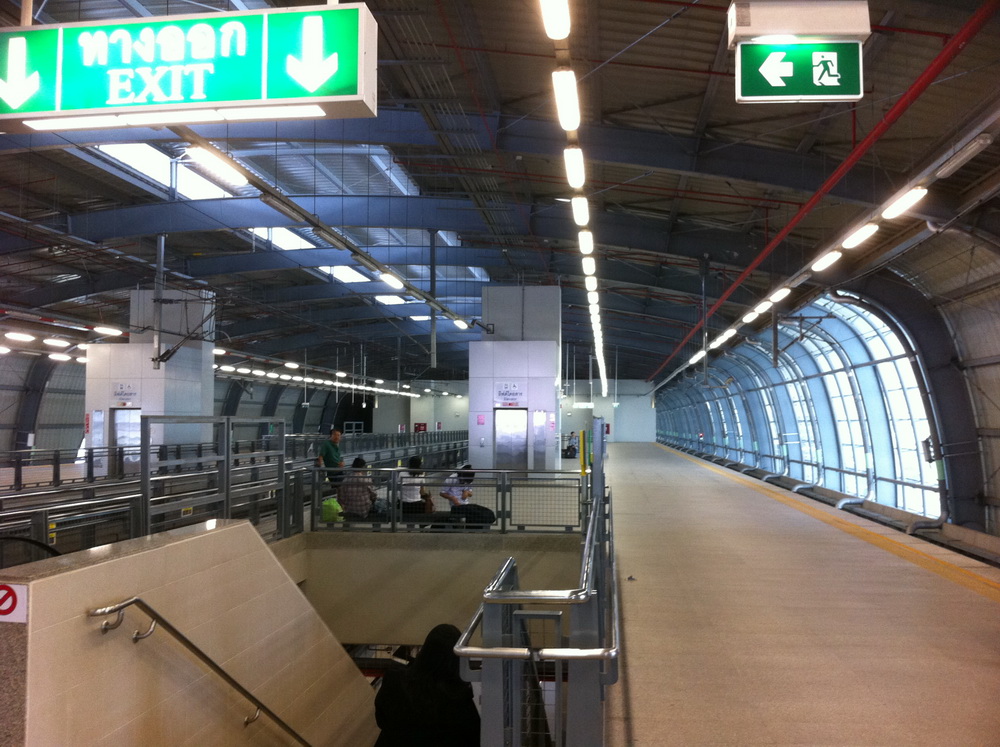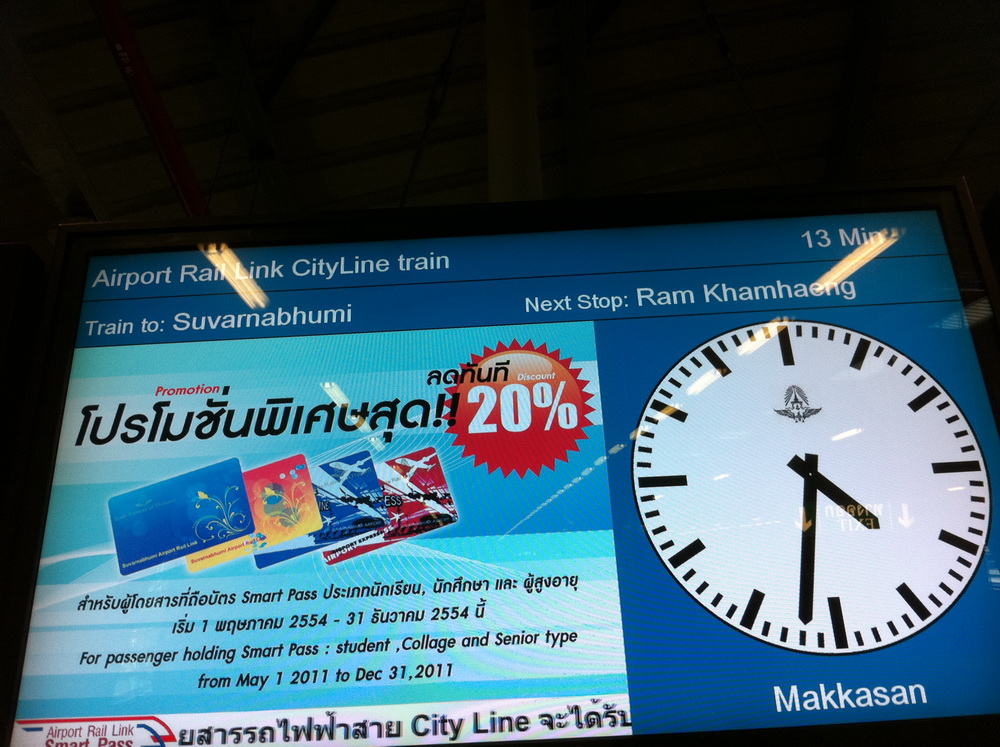 สถานีมักกะสันตอนสี่โมงครึ่ง คนน้อยจริง ๆ เพราะยังไม่เลิกงาน มีเพียงนักท่องเที่ยวบางส่วนรอรถไปสุวรรณภูมิอยู่ บรรยากาศเงียบเหงาไปบ้าง แต่คาดว่าใกล้เลิกงานคนคงเยอะกว่านี้