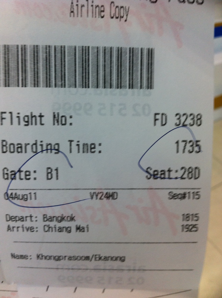 ไม่รู้เป็นโรคอะไร เจ้า Air Asia มักจะ Random ที่นั่งให้กับพวกเรา ไอ้เรื่องจัดที่นั่งแบบแยกผัวแยกเมียเค้าเนี่ย Air Asia เค้าถนัด มีเสียงค่อนขอดมาจากสายการบินว่า "ถ้าอยากนั่งติดกันก็จ่ายเพิ่มเป็น Hot Seat ซะก็หมดเรื่อง " แต่พวกเราก็เน้นย้ายที่นั่งมาติดกันเวลาเครื่องออกแล้ว ฮ่า ฮ่า ฮ่า(ดัดหลังซะให้เข็ด) เครื่องออก 18:15 นั่งเกือบท้ายเครื่อง 28D