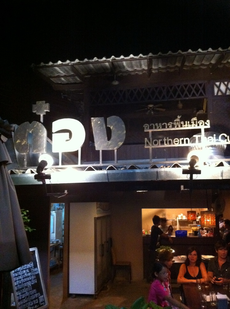 ตัดฉับไปที่สนามบินเชียงใหม่ เครื่องถึงทุ่มกว่า ๆ ไม่ต้องรอกระเป๋าเพราะเราไม่โหลด (เรื่องไรโหลด มันคิดตังส์ค่าโหลดกะเป๋าอีกน่ะซิ เรื่องไรต้องจ่ายเนอะ) พอออกจากประตูขาออกก็เจอหนุ่มน้อยของ Budget ผู้ที่จะนำยานพาหนะมาให้เราใช้ เสียดายมืดไปหน่อยเลยไม่ได้ถ่ายภาพไว้ วันนี้เราได้น้องแจ๊สทีบรอนซ์เงิน ใช้ไปแค่ 14,xxx กม เอง หิวจัดโครต ๆ เลยมุ่งหน้าหาอาหารเมืองกระแทกปากทันใด นี่เลย ร้านต๋อง นิมมานซอย 15 รำแต้ ๆ