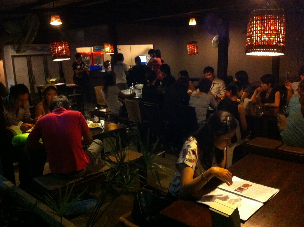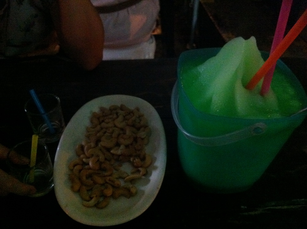 ผมนั่งชิวบรรยกาศที่ง่าย ๆ ใช้เงินไม่เยอะก็มีที่สังสรรค์ได้แล้ว ทั้งที่เมื่อ 3 ชั่วโมงก่อนผมยังอยุ่ในบรรยากาศรีบเร่งของกรุงเทพอยู่เลย เฮ้อ โลกนี้แคบลงจริง ๆ วันนั้นยังไม่อยากดื่มมากเลยสั่งเหล้าปั่นได้ แอ๊บเปิ้ลปั่นมากับเม็ดมะม่วงฯ แทน ชอบบรรยากาศค่ำ ๆ วันพฤหัสจริง ๆ