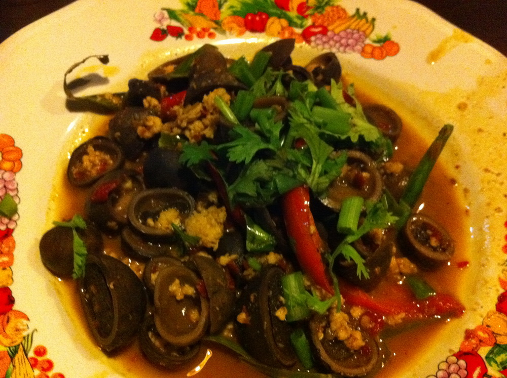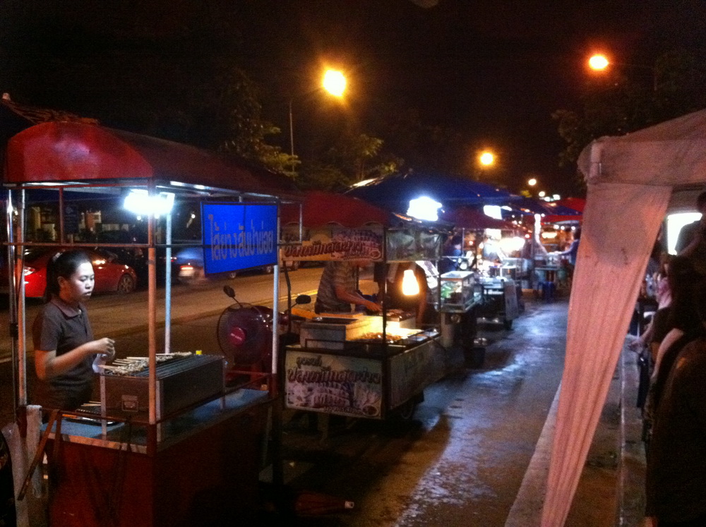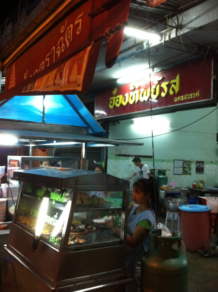 หลังจากทนเสียงอึกกระทึกไปได้สักสองชั่วโมง ก็ได้เวลานอน แต่ก่อนนอนไปหาอะไรร้อน ๆ กระแทกปากดีกว่า นี่เลย "อ๋องทิพย์รส" ร้านลูกชิ้นหัวนม ร้านดังย่านประตูช้างเผือกครับ