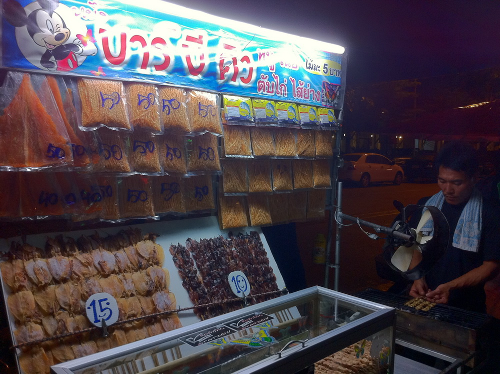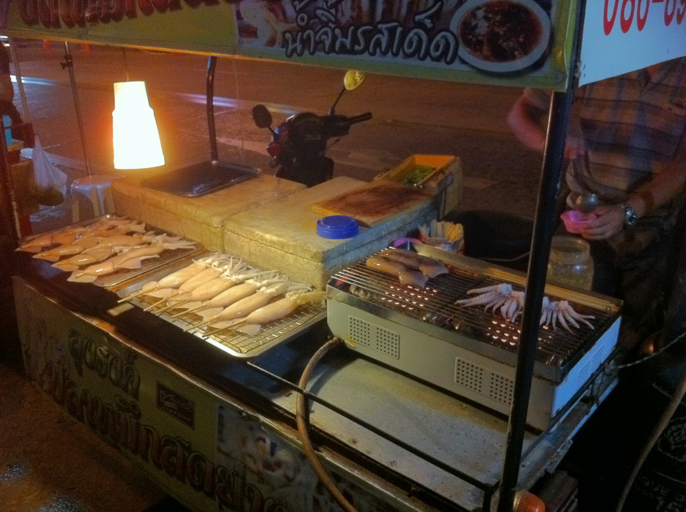 ปลาหมึกย่างก็มีนะครับ สั่งกันได้เลย 20 บาท 50 บาท สั่งแล้วเค้าเอาไปส่งให้ถึงโต๊ะในร้านกันเลย