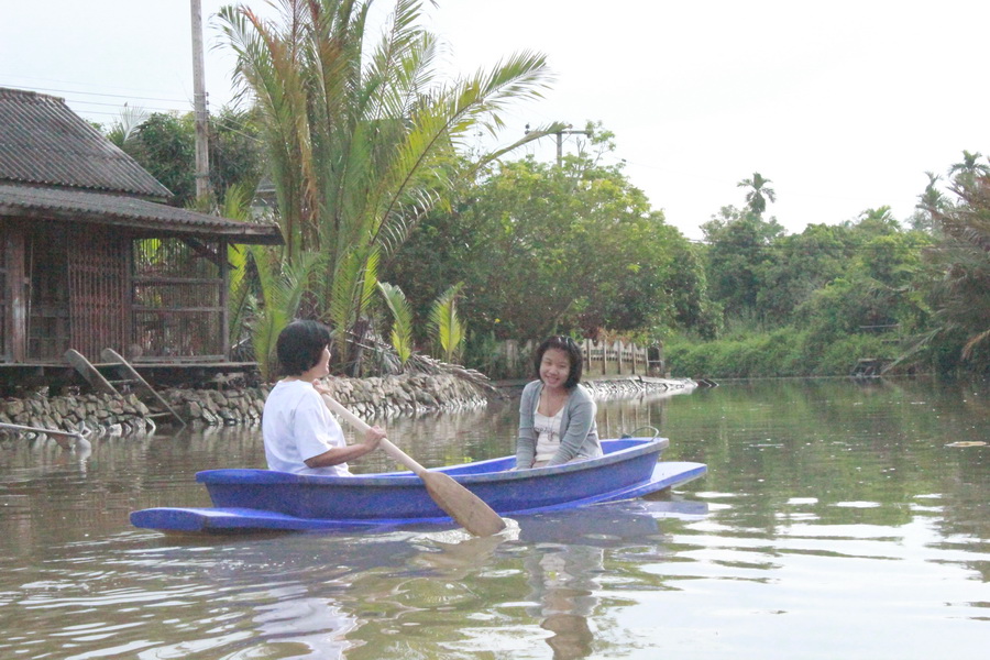 สาวๆเริ่มพายเรือ ชมคลองกันแล้วครับ ตัดเข้าตามคลองซอยไปก่อน