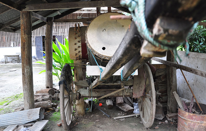 เข้าประตูวัดมาก็เห็นทั้งกลองยาวและกลองปู่จาซึ่งเป็นกลองที่มีเก็บทุกวัดของภาคเหนือซึ่งสมัยโบราณใช้ตีบอกวันโกนวันพระเพื่อบอกบุญให้กับชาวบ้าน