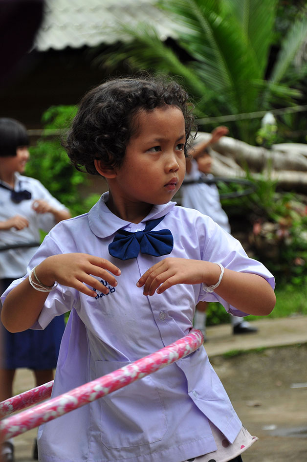 เด็กได้รับทุนและอุปกรณ์การเรียน ยังมีของเล่นที่น้าคูเมืองนำมามอบให้อีกหลายรายการ ในภาพเด็กๆเลยสาธิตฮูลาฮูบ(เขียนถูกหรือเปล่าครับ)ให้ดูซะหน่อยว่าเล่นแบบนี้นะอย่าเอาไปกลิ่งเล่น
