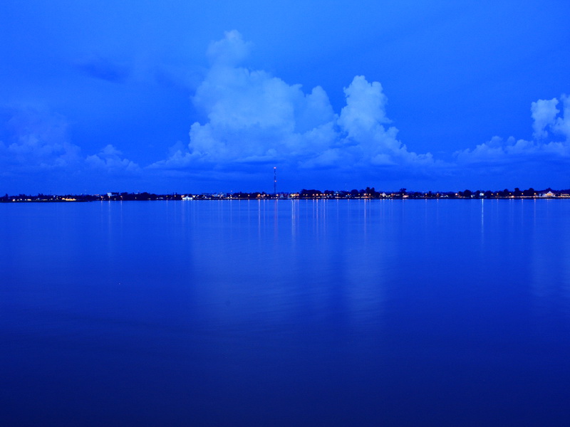 ที่ริมโขงยามเย็น ฝั่งตรงข้ามสะหวันเขต เหมือนจะบอกพี่ไทยว่า ไฟฟ้าที่เค้ามีใช้เยอะ เรายังต้องซื้อมาใช้ 5555