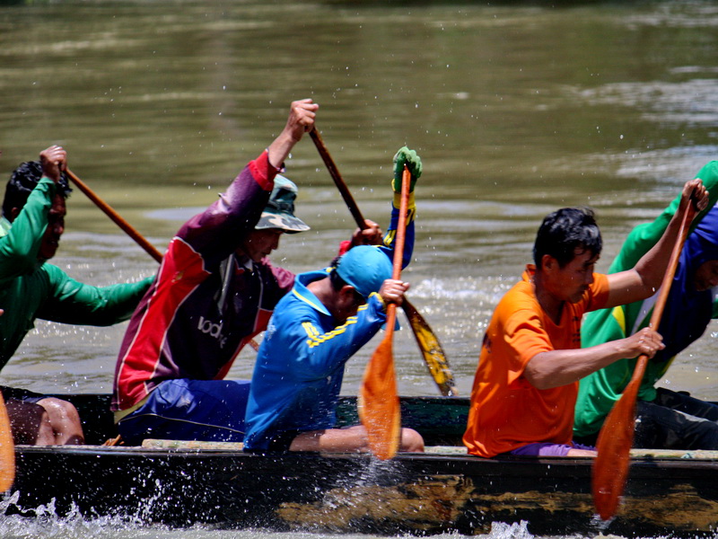 อันนี้ทีมชาย พี่แกตะโกนบ่นมาตั้งแต่ยังไม่พ้นคุ้งน้ำ พายจนเข้าเส้นแล้ว ยังบ่นไม่เลิก น่าตาพี่แกสุดยอด ดุจริง ๆ ขอให้ชนะนะพี่ ผมเชียร์