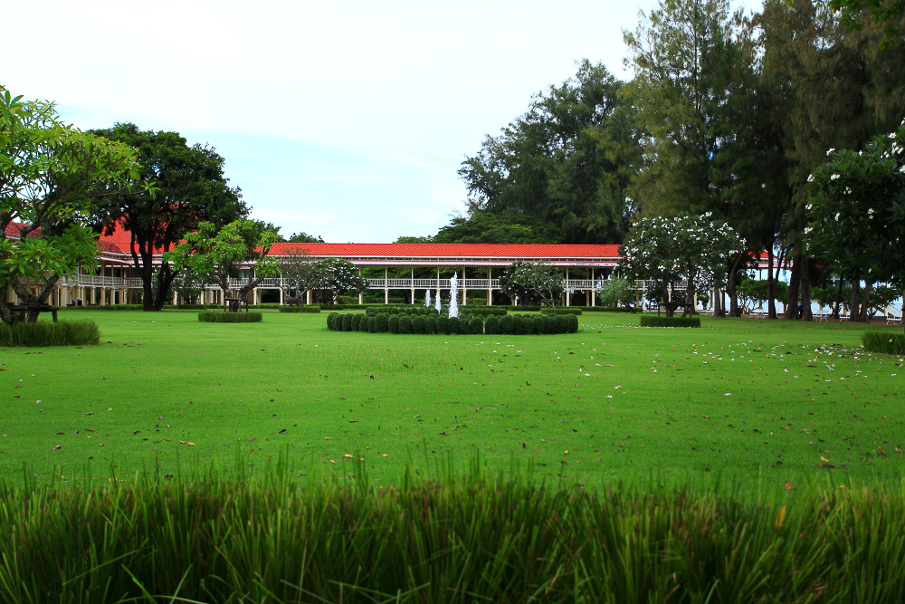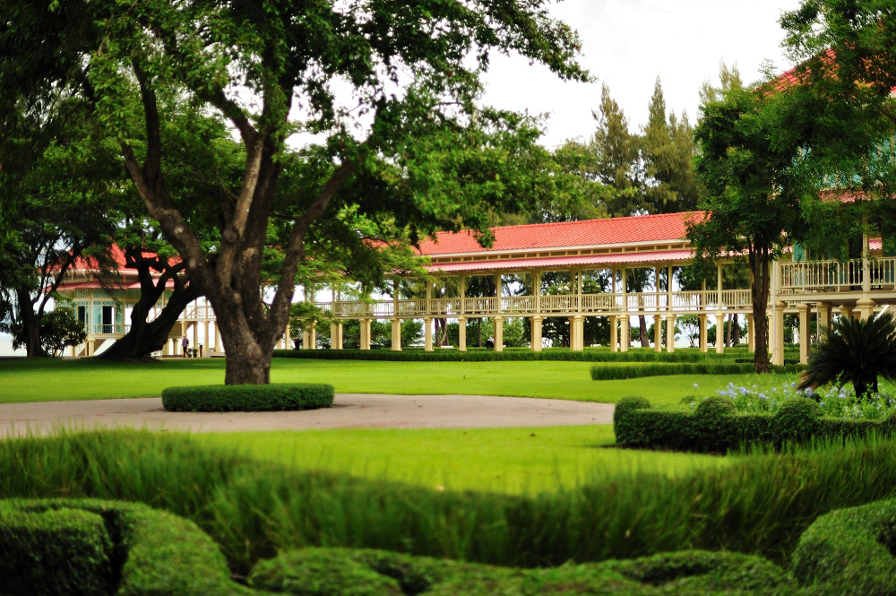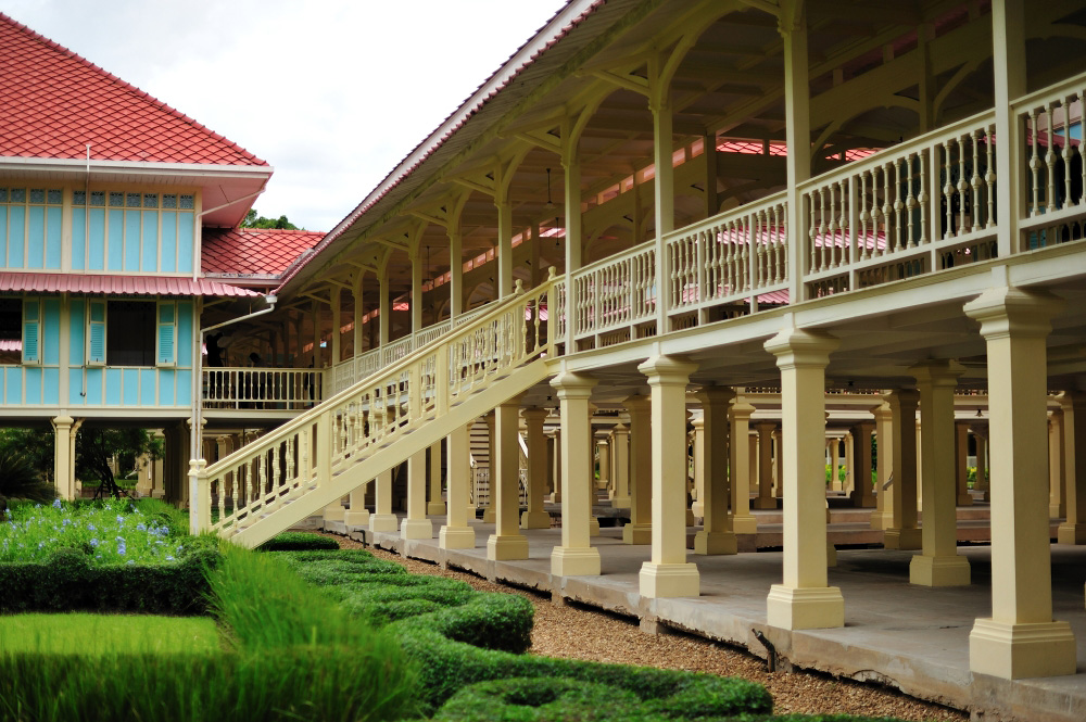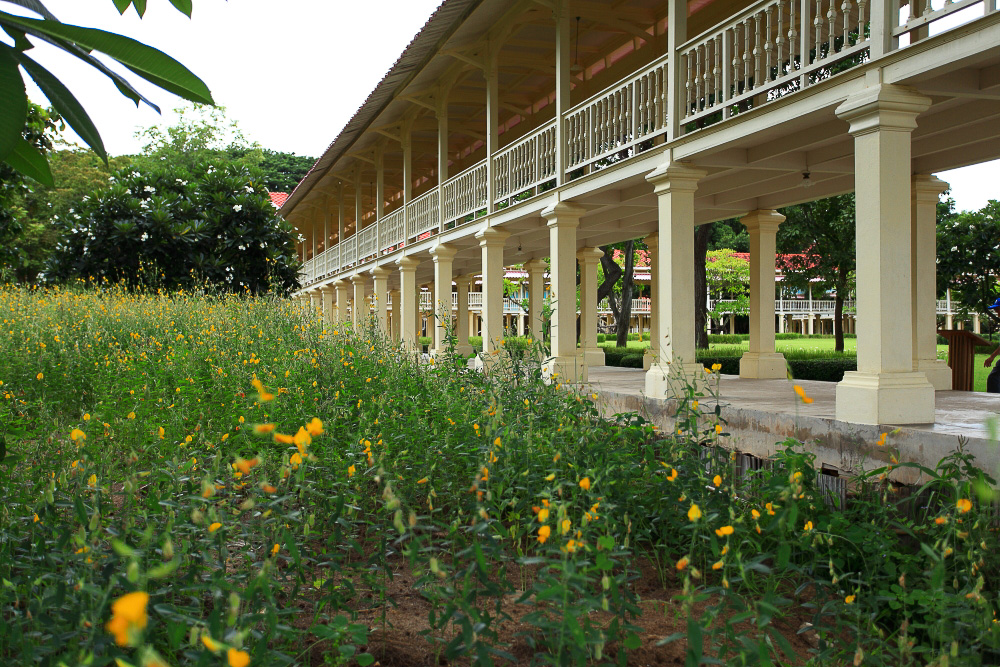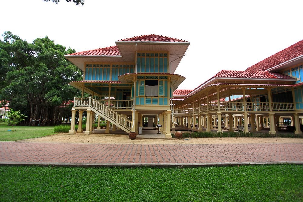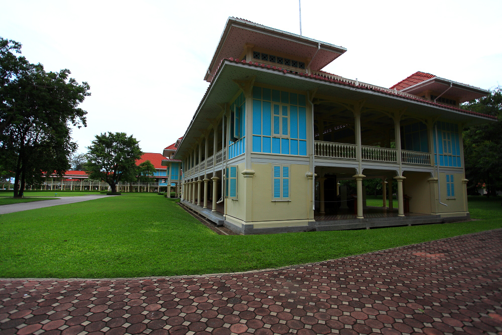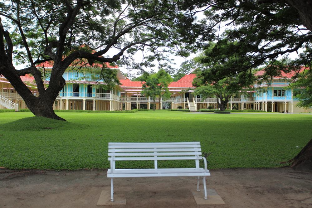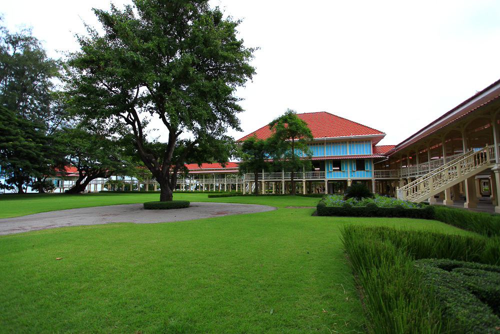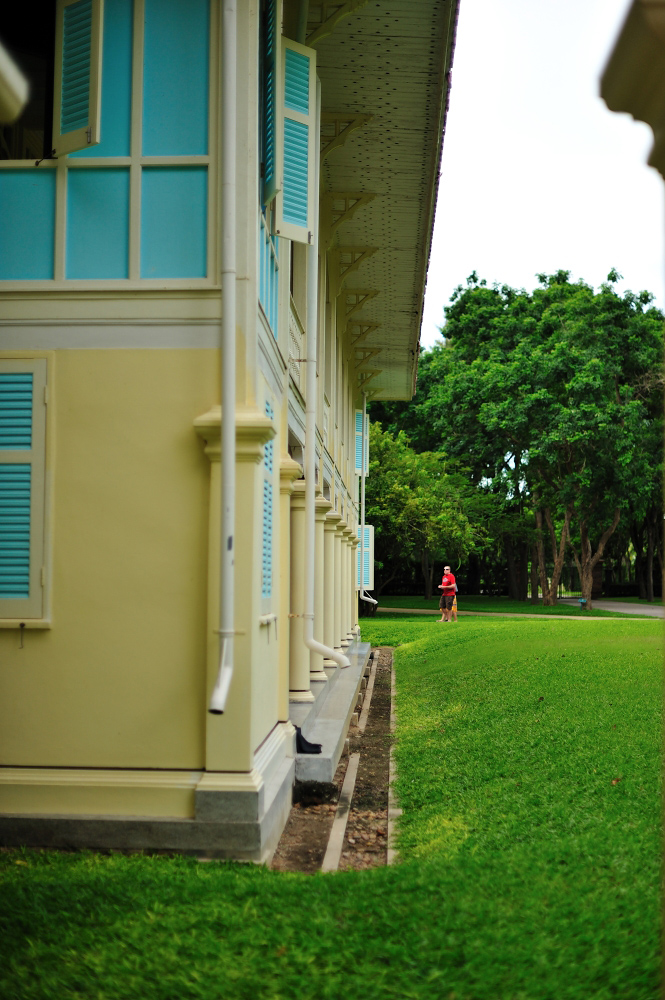 ทางเดินเข้าไปด้านในพระทั่นัง ต้นไม้ใหญ่ให้บรรยากาศร่มรื่น