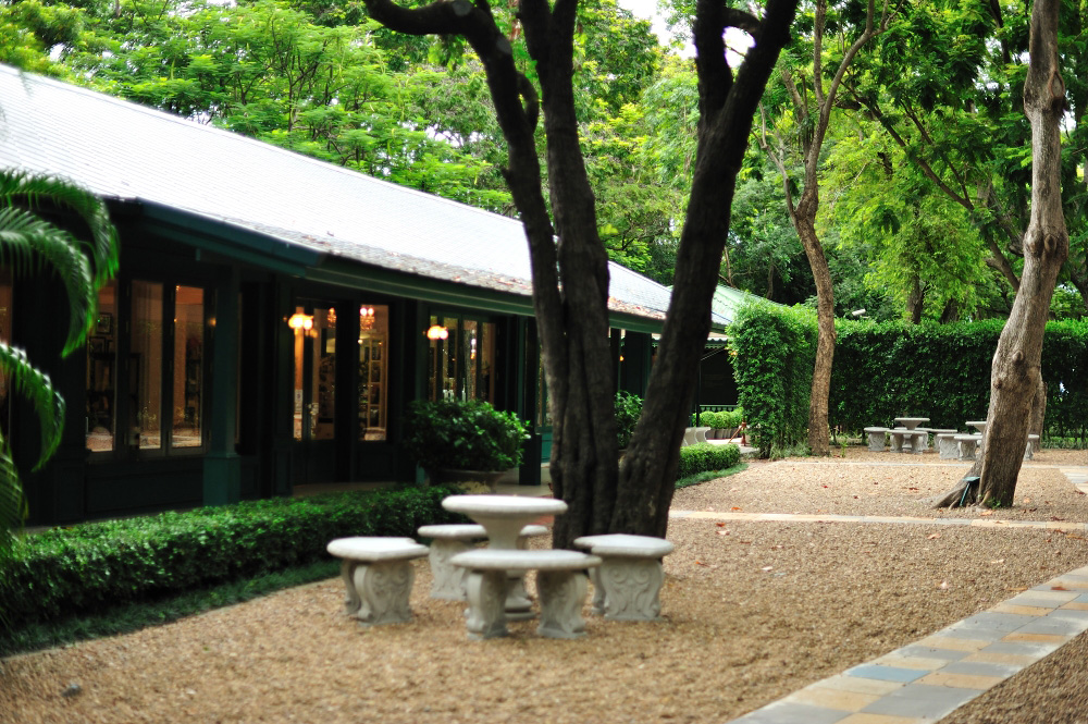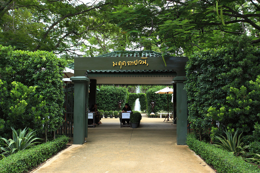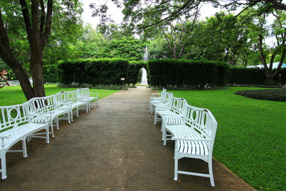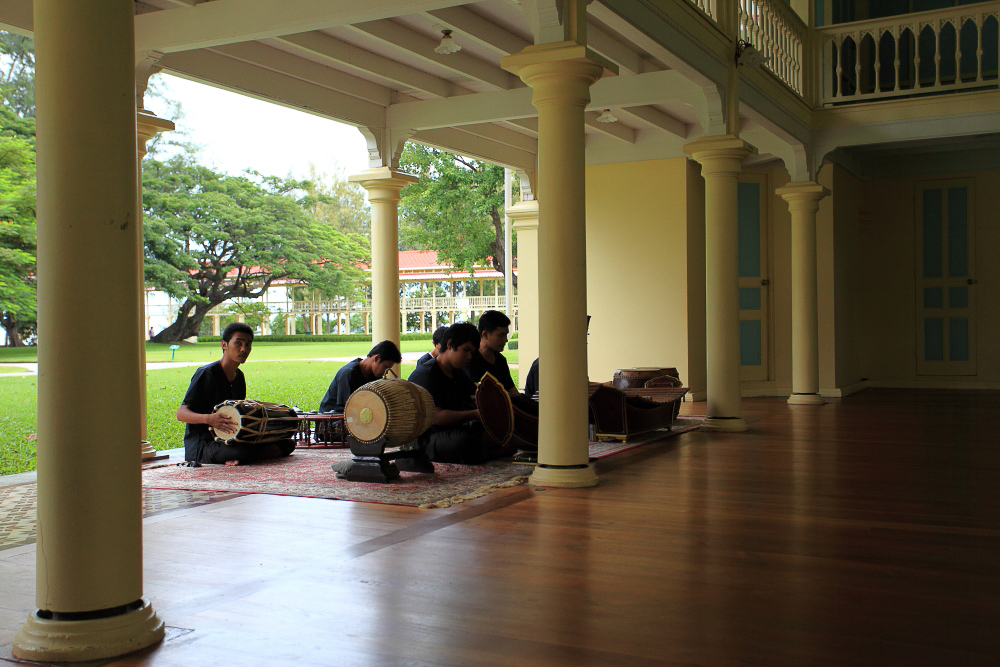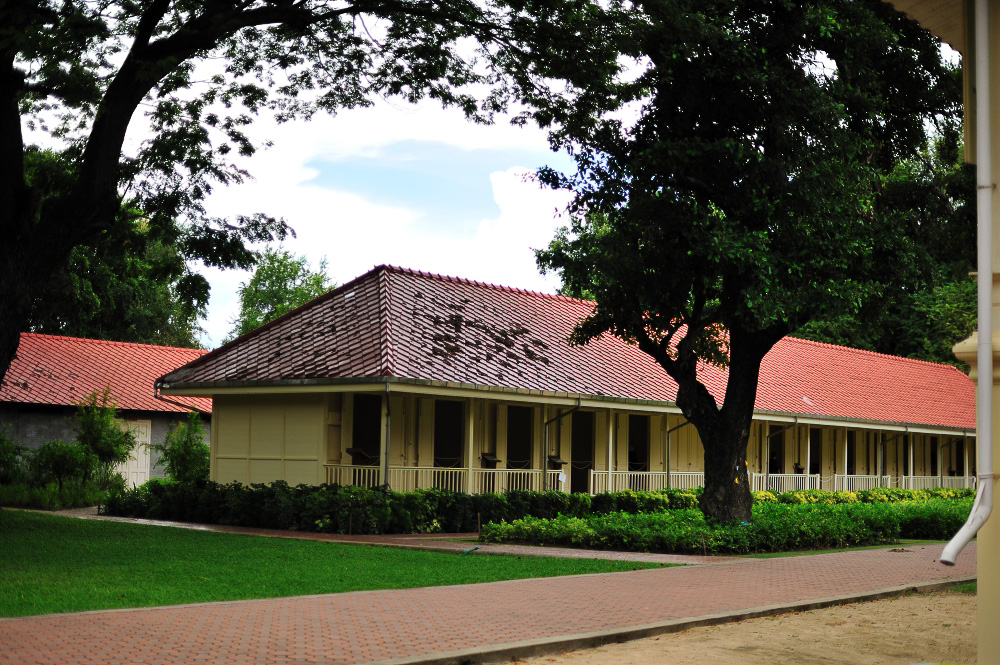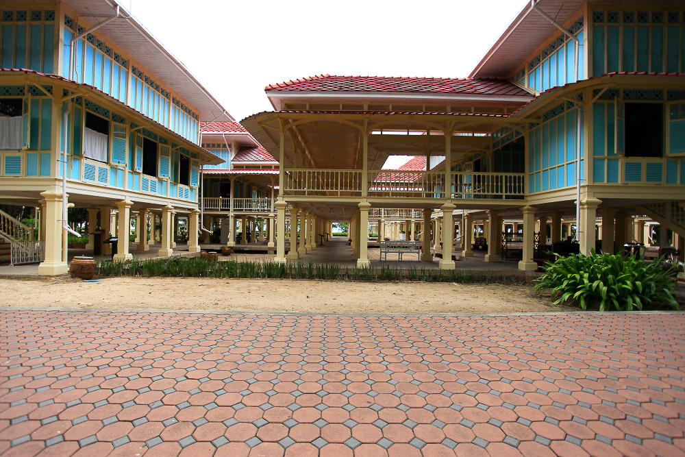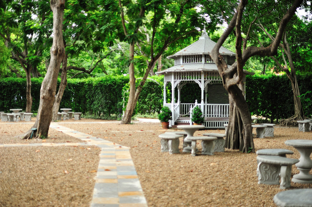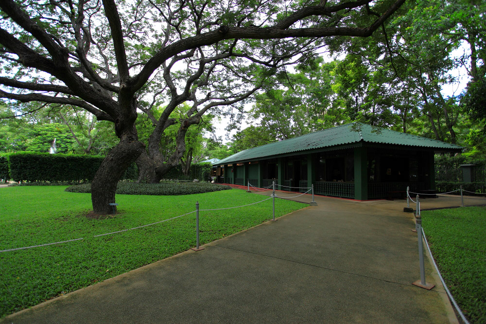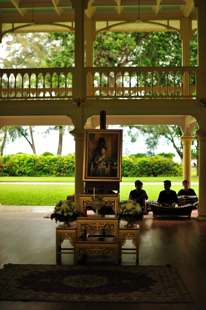 ทางเดินเข้าไปด้านในพระทั่นัง ต้นไม้ใหญ่ให้บรรยากาศร่มรื่น