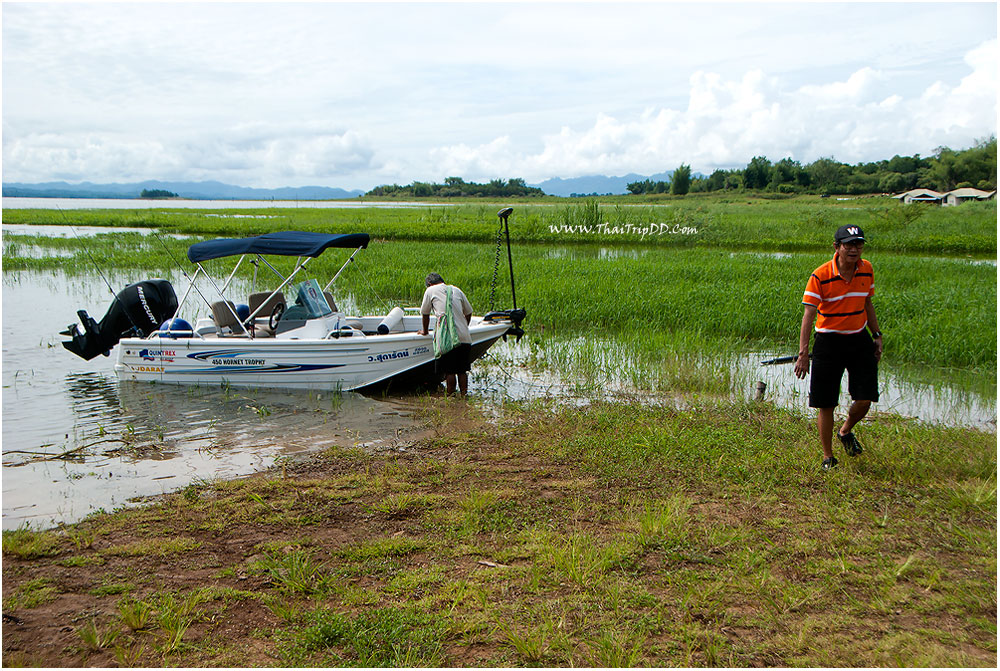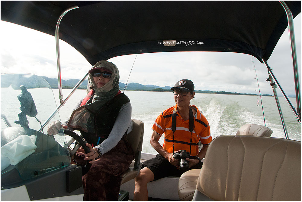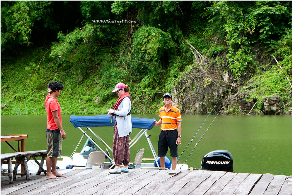 ก่อนถึงน้ำตกห้วยแม่ขมิ้มอาเจ็กขับเรือแวะเข้าไปรับผู้จัดการติดเรือมาด้วย เพื่อมาดูแรอขณะที่พวกเราต้องขึ้นไปเที่ยวน้ำตกกัน