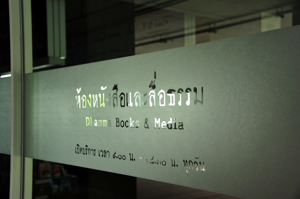 ห้องหนังสือและสื่อธรรม ตั้งอยู่ชั้นล่าง