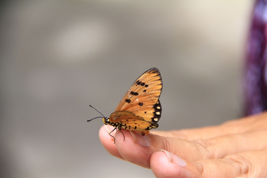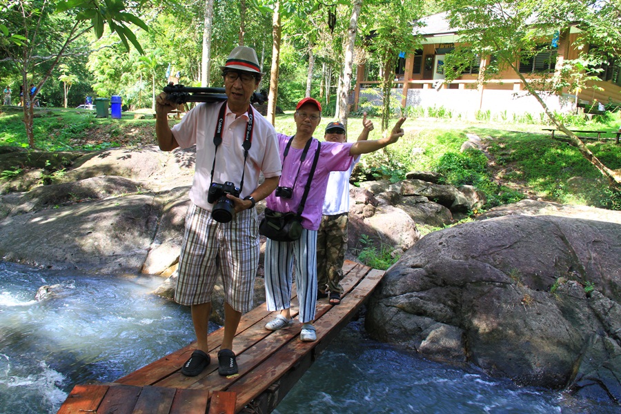 ผีเสื้อตัวน้อยคงอยากเข้าไปเที่ยวน้ำตกด้วย บินมาเกาะมือคุณแม่น้องชูชิ ขอตามไปด้วยฮ่ะ