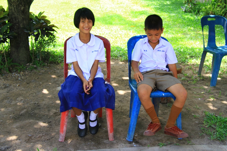 มัคคุเทศน้อยนั่งรอแขกผู้มาเยี่ยมเยือน น่ารักทั้งคู่