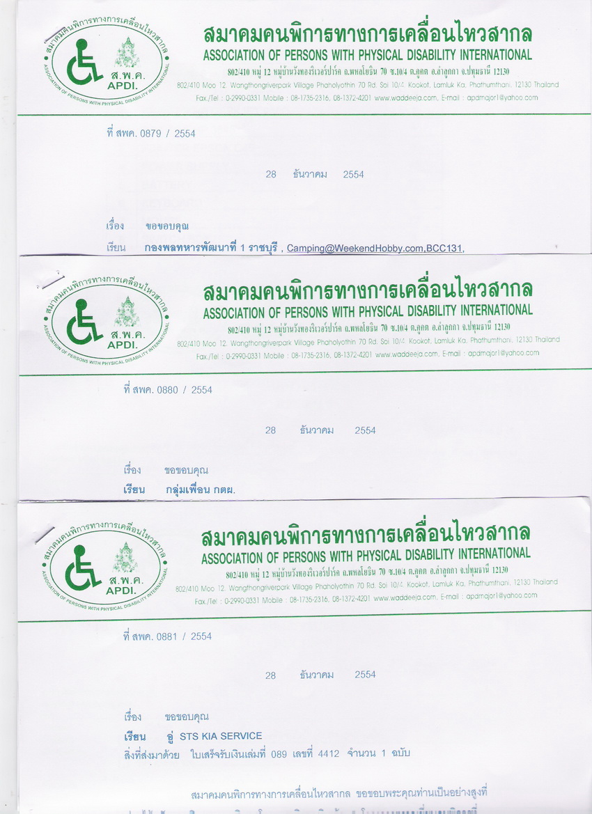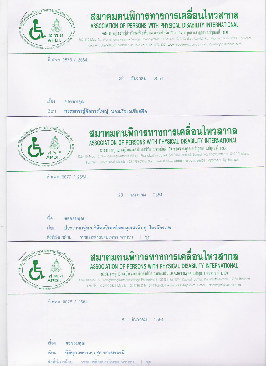 รายการของบริจาคเพื่อส่งมอบสมาคมคนพิการทางการเคลื่อนไหวสากล 08/10/54