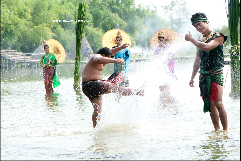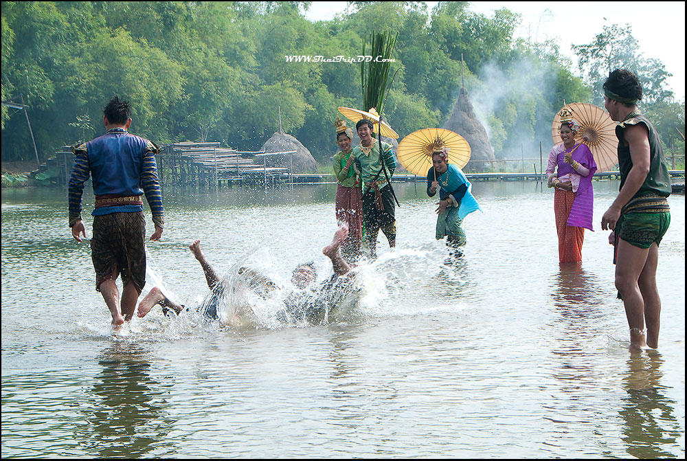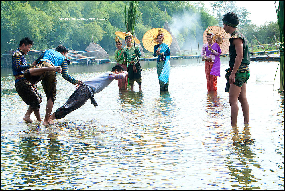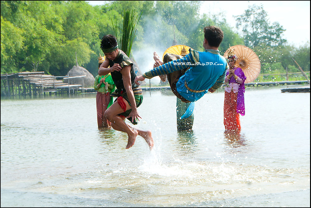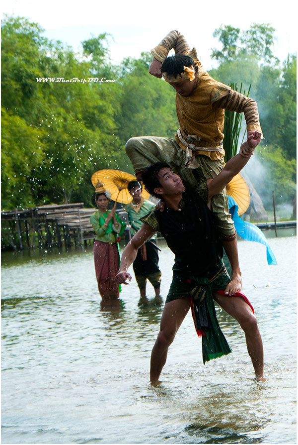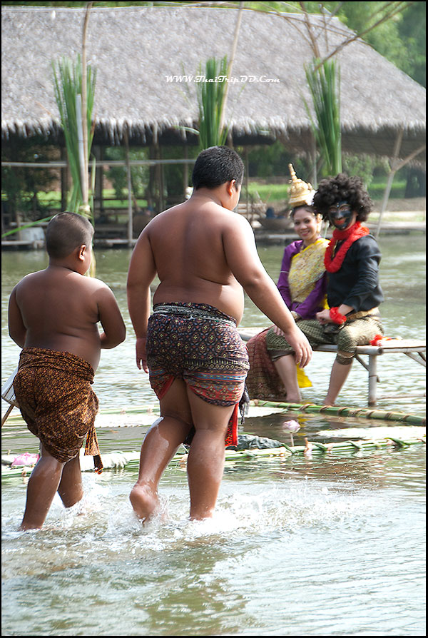 เวทีกลางน้ำกำลังแสดงเรื่อง" ไกรทองพิชิตชาละวัน " ก็ไม่รู้ดำเนินเรื่องมานานหรือยัง