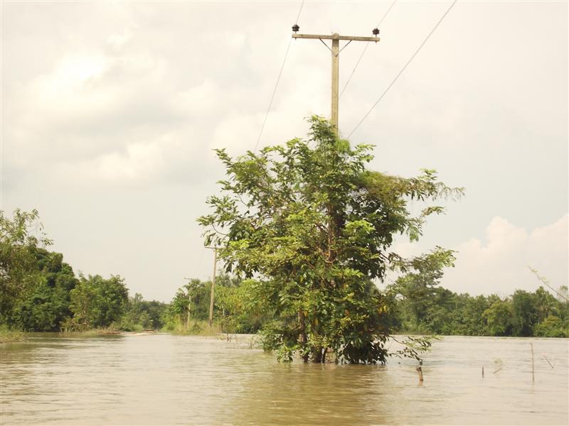 บ้านจมอยู่ใต้น้ำครับ เรือต้องระวังด้วยไม่งั้นล่มแน่