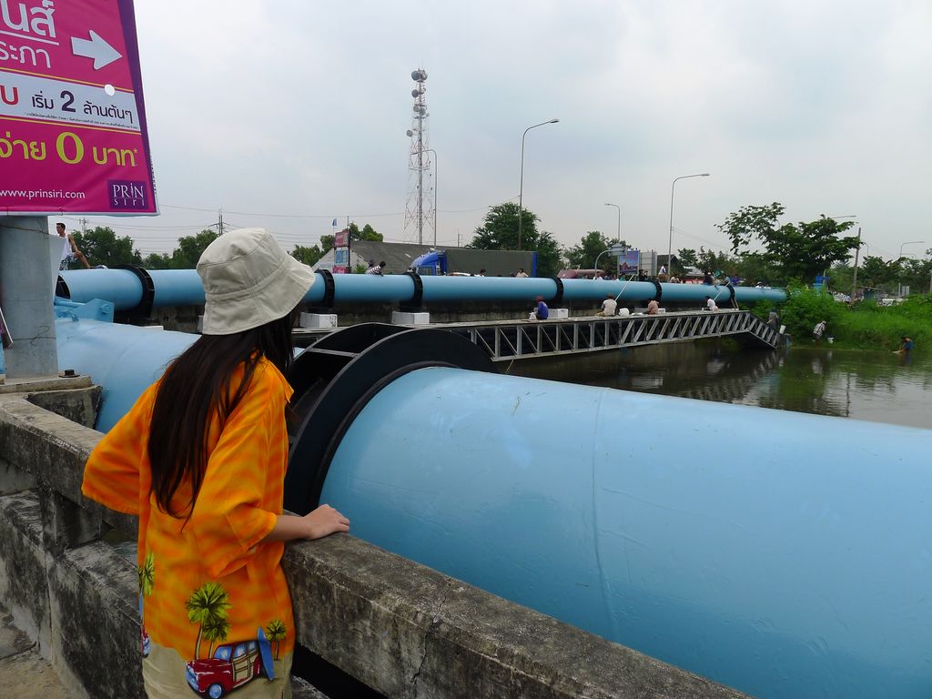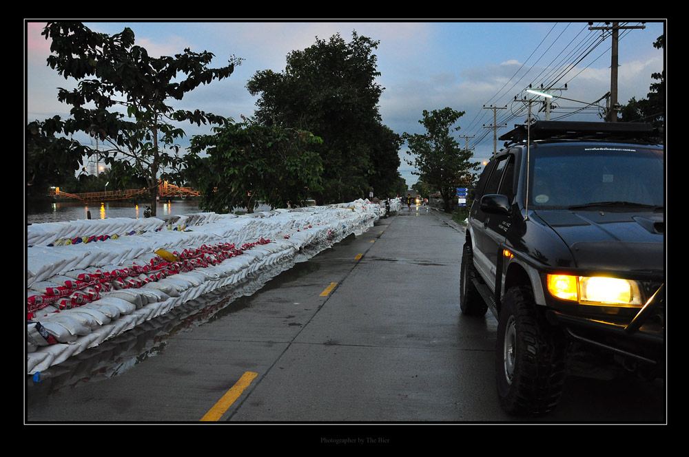 ระดับน้ำที่กั้นคลองรังสิต สูงประมาณครึ่งรถยนต์ของผมได้ครับ