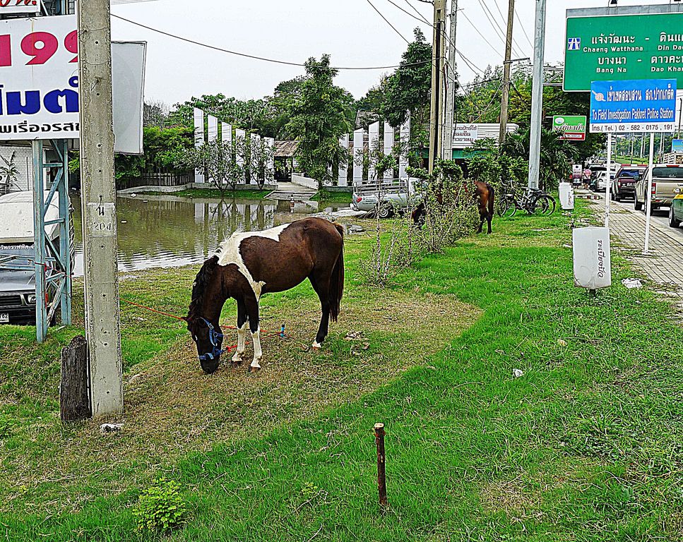 พี่ม้าถูกนำมาเลี้ยงริมถนน