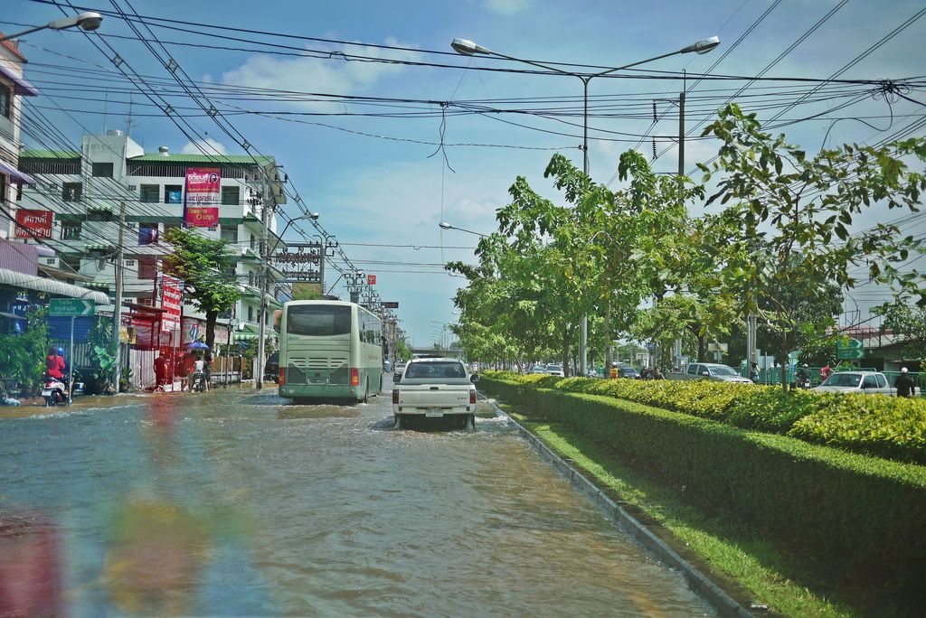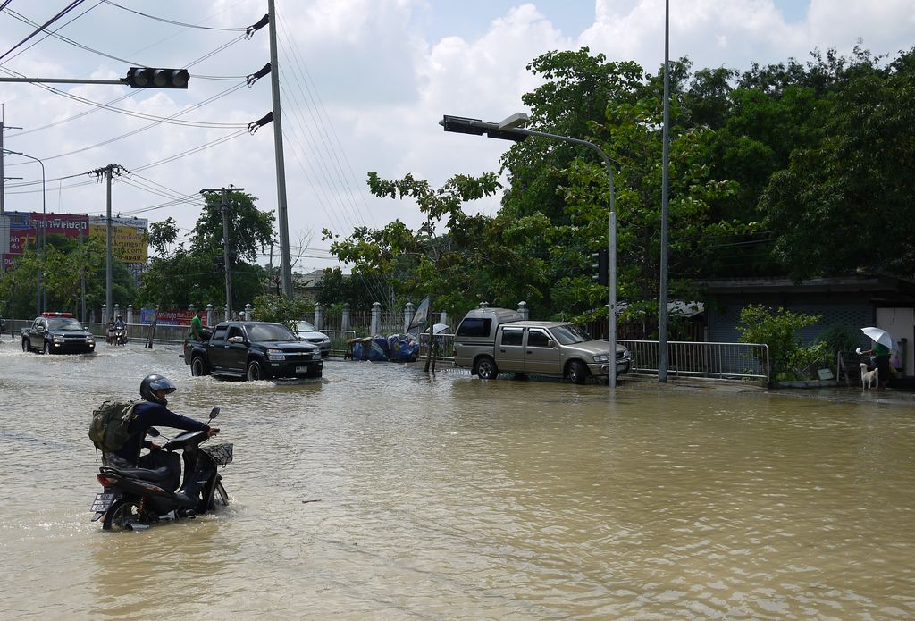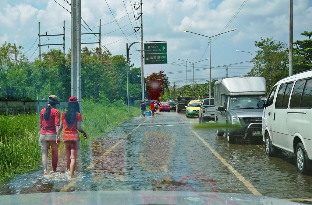 ทะลุมาถนนสรงประภา ดอนเมือง ไอ้หย๋า...น้ำท่วมเต็มถนน ถอยก็ไม่ได้ ลุยกันเล้ย...