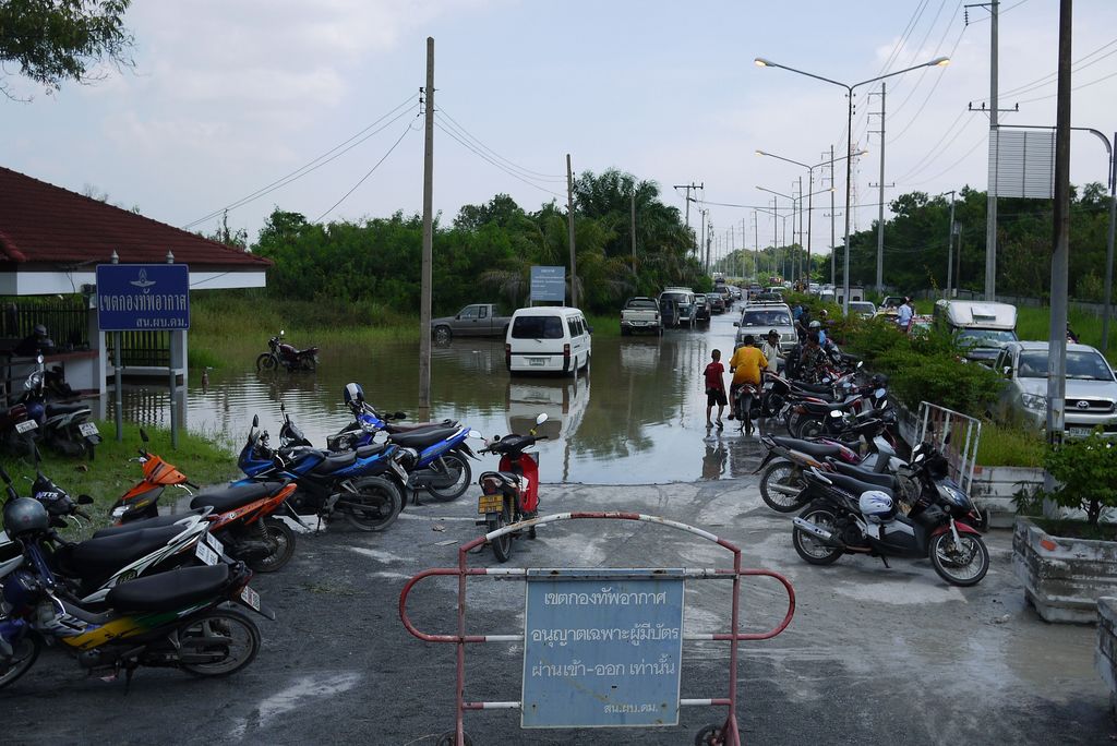 แต่ด้านข้างทางฝั่งทหารน้ำมาทางทุ่งเอ่อท่วมเต็มสนามบินเล็ก