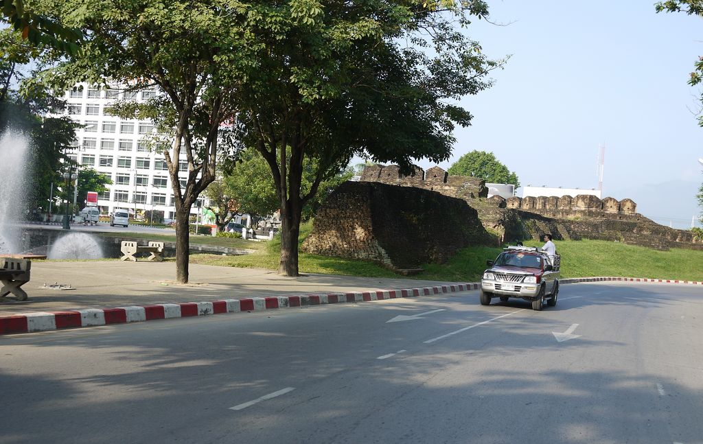 ถนนเชียงใหม่ยามเช้าวันอาทิตย์โล่ง ไม่ค่อยจะมีรถวิ่งเลย...