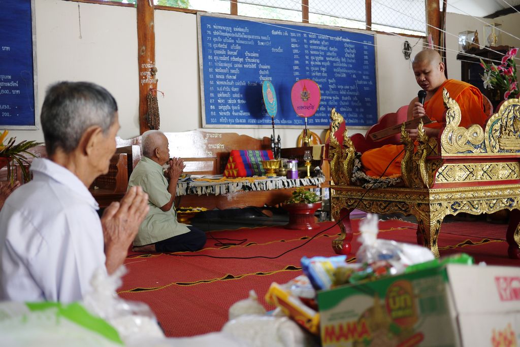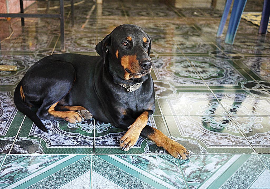 เจ้าฟาร์ม หมาซ่าประจำหมู่บ้านกลัวประทัด ไปนั่งพับเพียบเรียบร้อยอยู่ในศาลาวัด