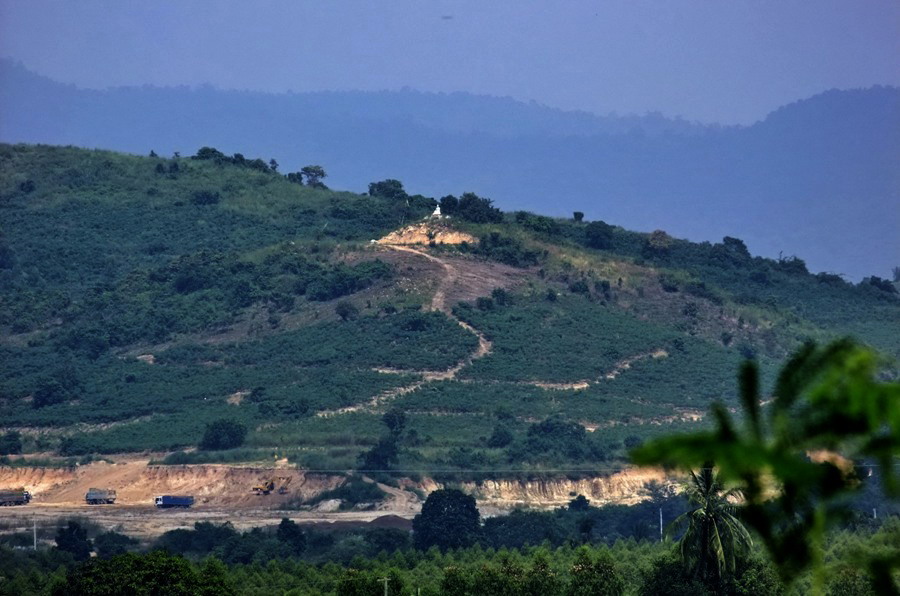 บนเขาตันไม้โดนตัดซะเตียนหมด.....เหลือต้นไม้ต้นเดียว..รถ8คันอัดกันโคนตันไม้