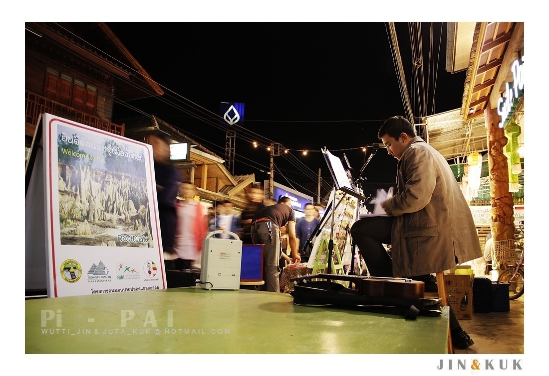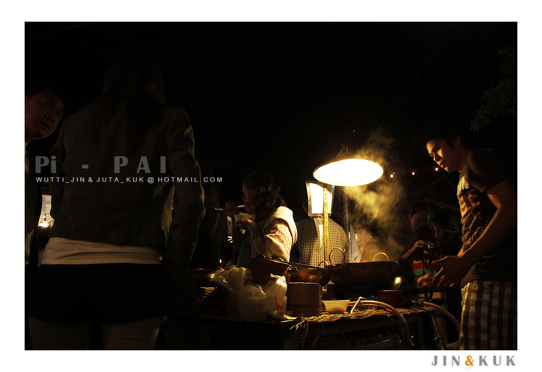 ค่ำคืนแรกที่ปาย เราอยู่ใด้แต่ถนนคนเดินซึ่งหาความเป็นปายไม่เจอหรอกสำหรับผม แต่ผมก็เพลิดเพลิน จำเริญใจไปอีกแบบ และไม่ขัดในความเป็นปายในปัจจุบันซักนิดเลย เพราะทุกอย่างใด้เปลี่ยนไปแล้ว แต่ที่แน่ๆ ค่ำคืนนี้เราจะนอนใหนนี่แหละสำคัญมาก มาปายทั้งที่เราก็อยากจะกางเต้นท์ริมแม่น้ำปายก็ว่าอย่างนั้น ว่าแล้วเราก็หากันแทบทั้งคืนเลยครับ จริงๆแล้วก็ไม่ค่ออยากนอนโรงแรมเท่าไหร่เพราะเสียงเพลงดังมาก ไม่หลับไม่นอนกันเลย